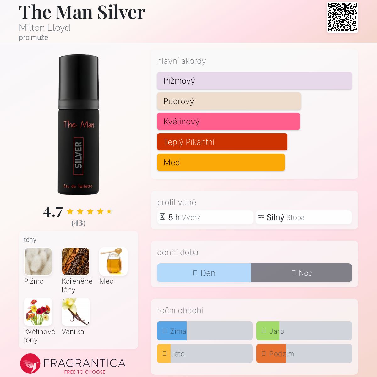 The Man Silver podle Milton Lloyd je Woody Spicy vůně pro muže. The Man Silver byla spuštěna během 2010. Vrchní tón je Aromatické koření ; střední tóny jsouMed a Květinové tóny ; základní tóny jsou Pižmo a Vanilka.