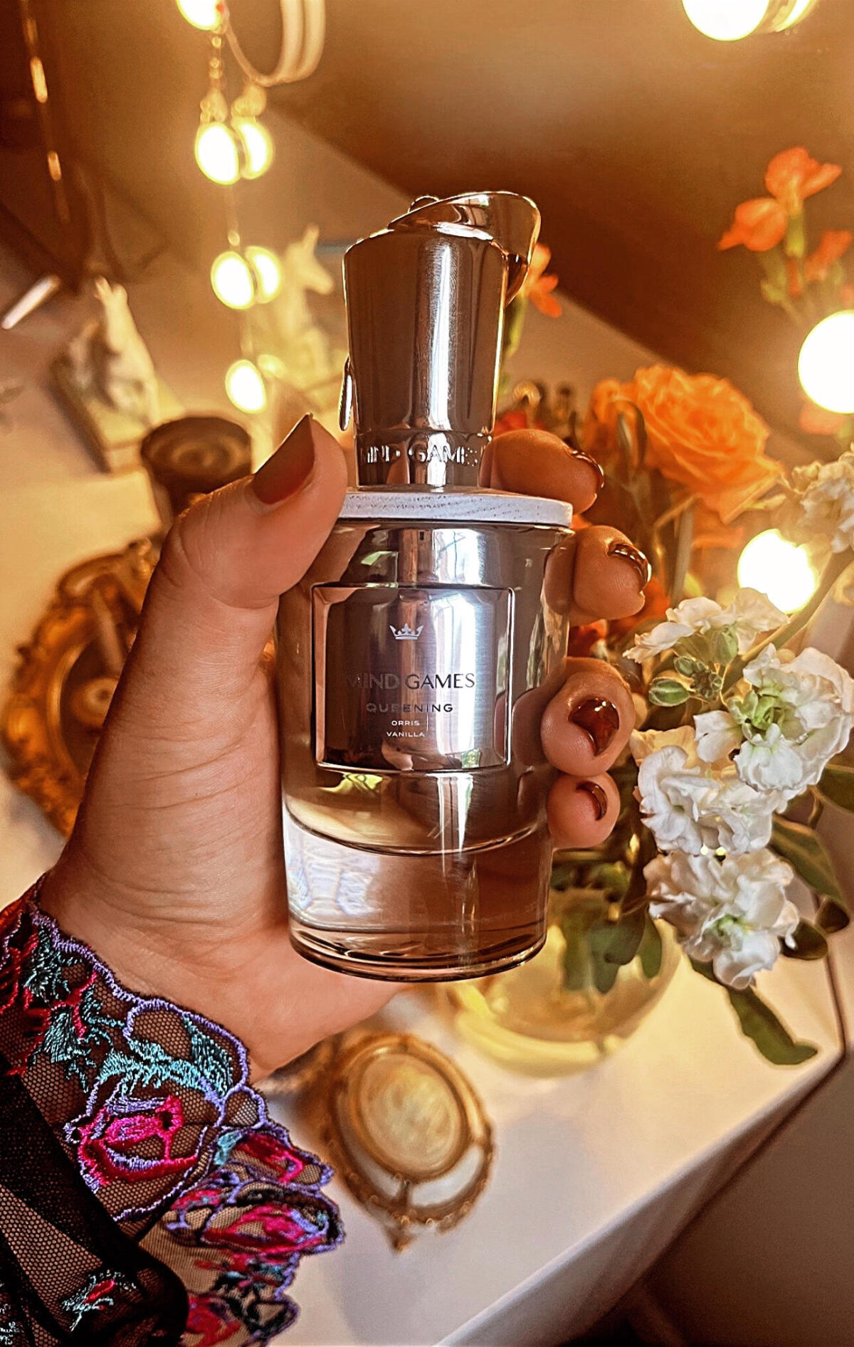 Queening podle Mind Games je vůně pro ženy a muže. Queening byl/a uveden/a v roce 2023. "Nosem" za touto vůní je Christelle Laprade. Vrchní tóny jsou Bavlna, Jablko a Cypřiš; střední tóny jsouKořen orris, Rum a Šafrán ; základní tóny jsou Vanilka, Kokos a Pižmo.