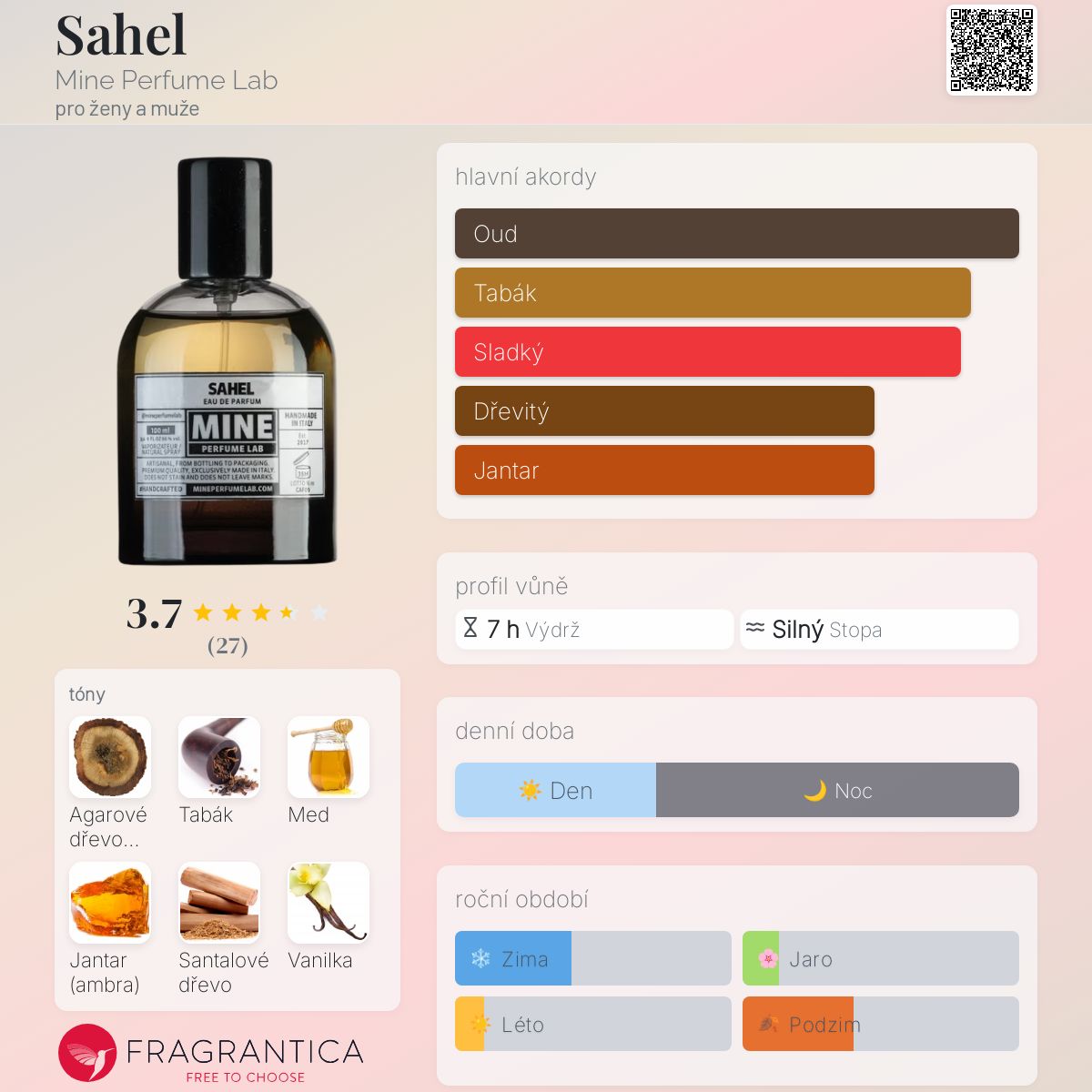 Sahel podle Mine Perfume Lab je vůně pro ženy a muže. Sahel byl/a uveden/a v roce 2019. Vrchní tón je Tabák ; střední tón jeMed ; základní tóny jsou Agarové dřevo (oud), Jantar (ambra), Santalové dřevo a Madagaskarská vanilka.