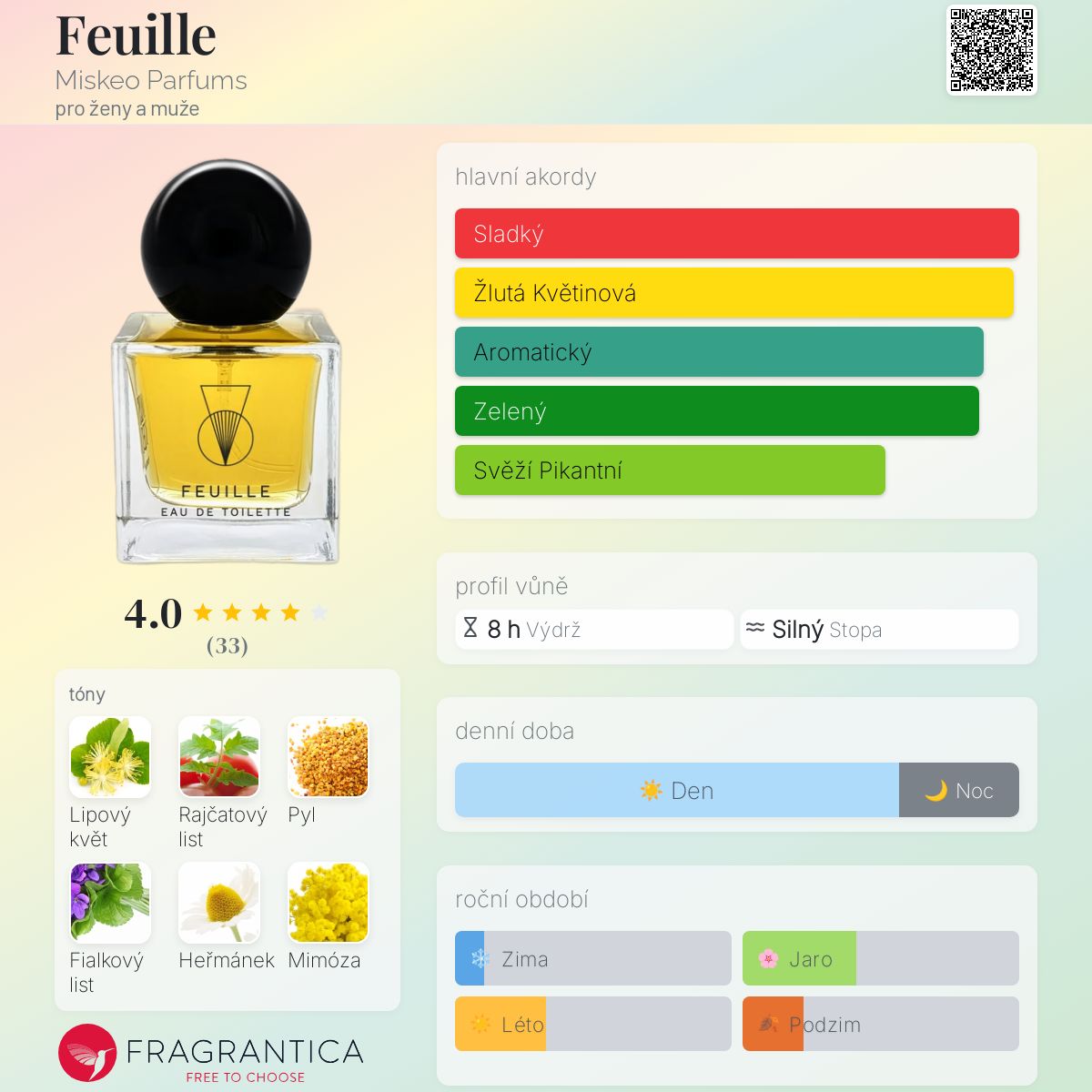 Feuille podle Miskeo Parfums je vůně pro ženy a muže. Feuille byl/a uveden/a v roce 2023. "Nosem" za touto vůní je Marie-Pierre Blanchette.
