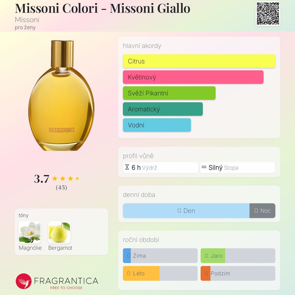 Missoni Colori - Missoni Giallo podle Missoni je Floral Fruity vůně pro ženy. Missoni Colori - Missoni Giallo byl/a uveden/a v roce 2008.