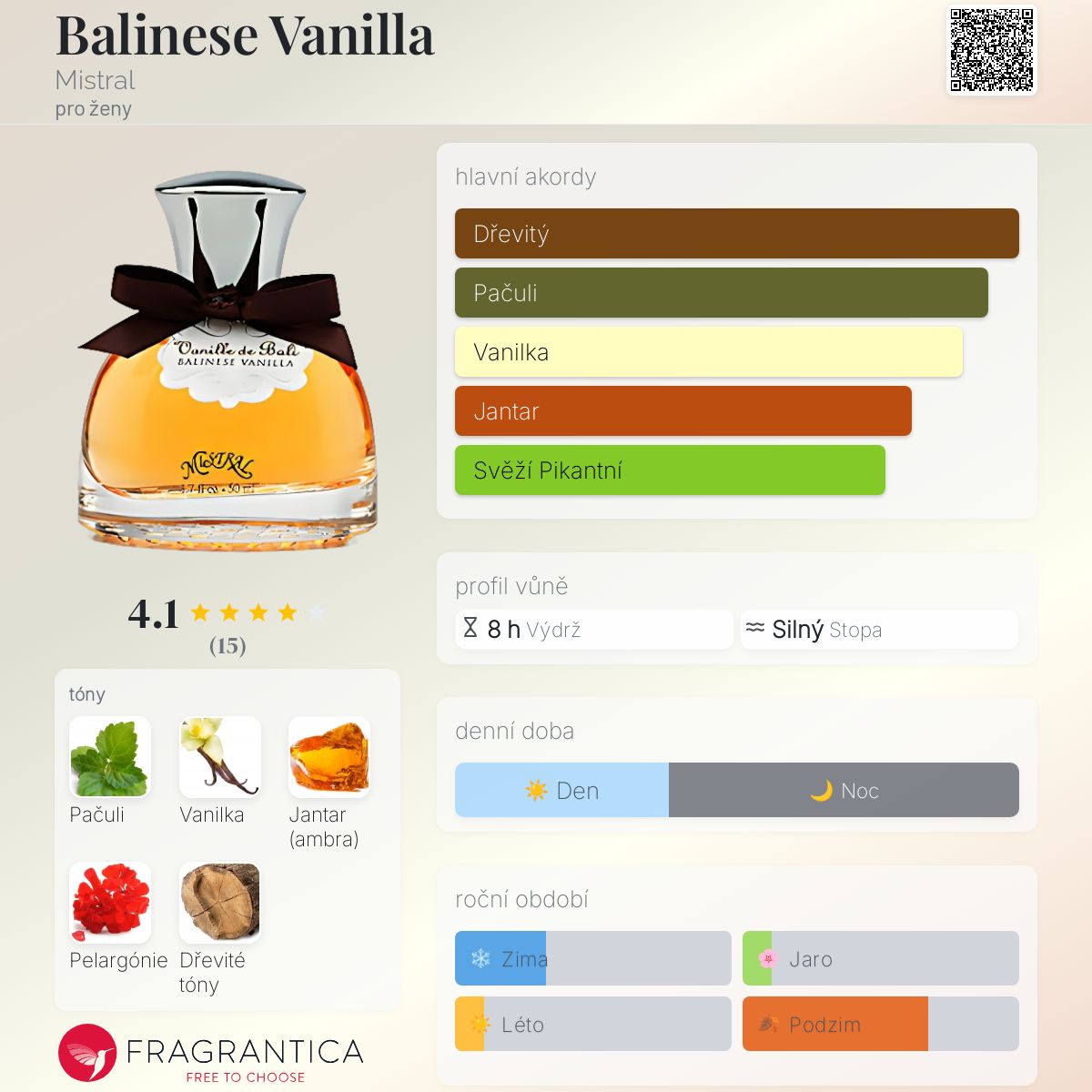 Balinese Vanilla podle Mistral je Orientální Woody vůně pro ženy.