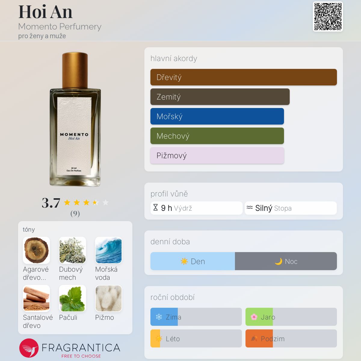 Hoi An podle Momento Perfumery je Woody Aquatic vůně pro ženy a muže. Hoi An byl/a uveden/a v roce 2021. "Nosem" za touto vůní je Mladen Dragic.