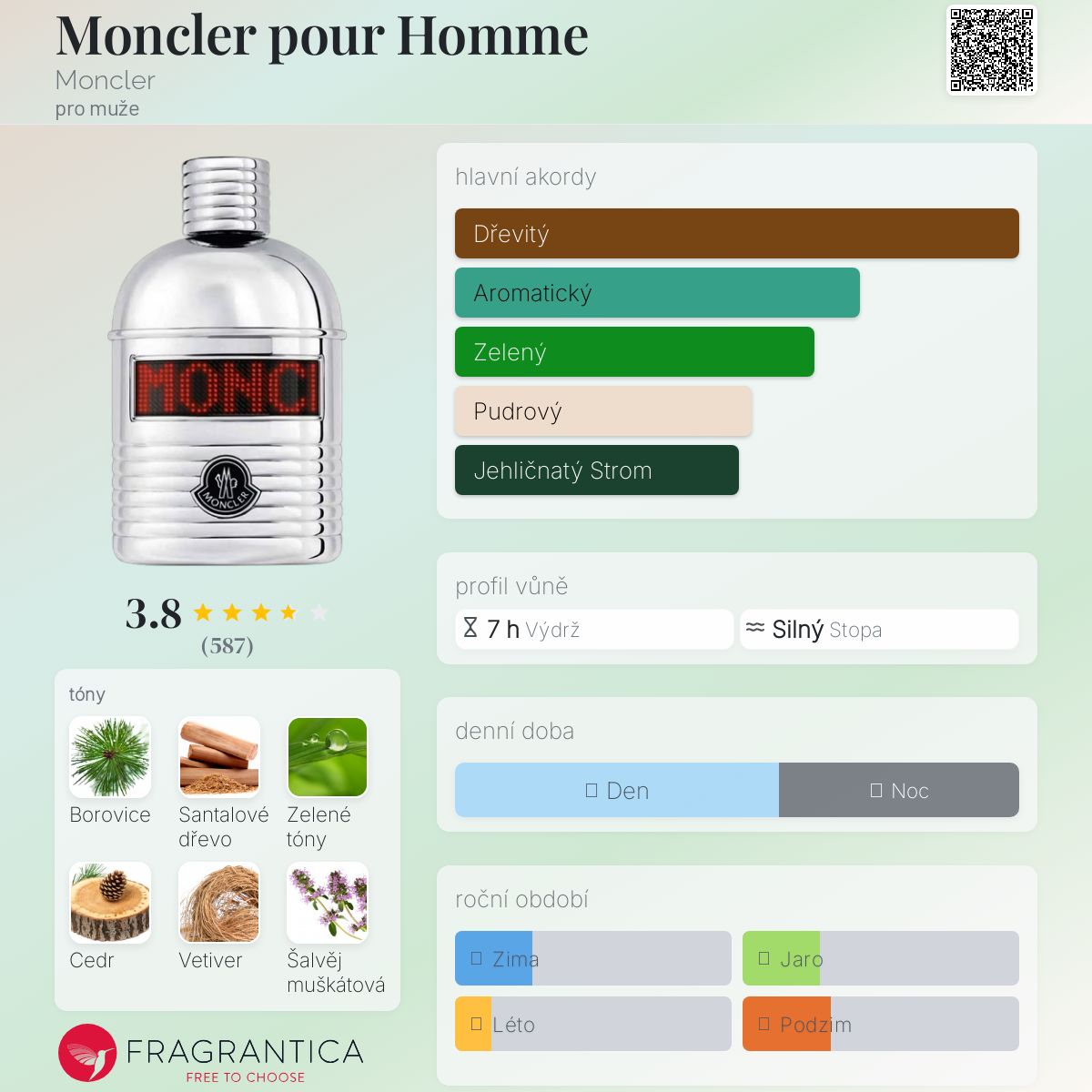 Moncler pour Homme podle Moncler je Woody Aromatic vůně pro muže. Moncler pour Homme byl/a uveden/a v roce 2021. Moncler pour Homme byl/a vytvořen/a Antoine Maisondieu a Christophe Raynaud. Vrchní tóny jsou Zelené tóny a Šalvěj muškátová; střední tón jeBorovice ; základní tóny jsou Santalové dřevo, Cedr, Vetiver a Jantar (ambra).