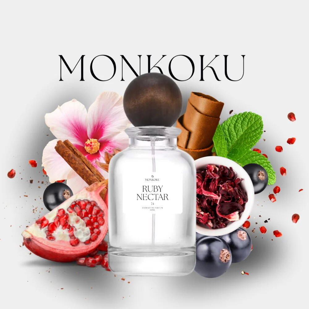 Ruby Nectar podle Monkoku je Floral Fruity vůně pro ženy a muže. Toto je nová vůně. Ruby Nectar byl/a uveden/a v roce 2025. Vrchní tóny jsou Ibišek, Černý rybíz a Granátové jablko; střední tóny jsouTurecká růže, Spearmint a Čaj ; základní tóny jsou Vanilková orchidej, Pižmo, Kůže a Skořice.
