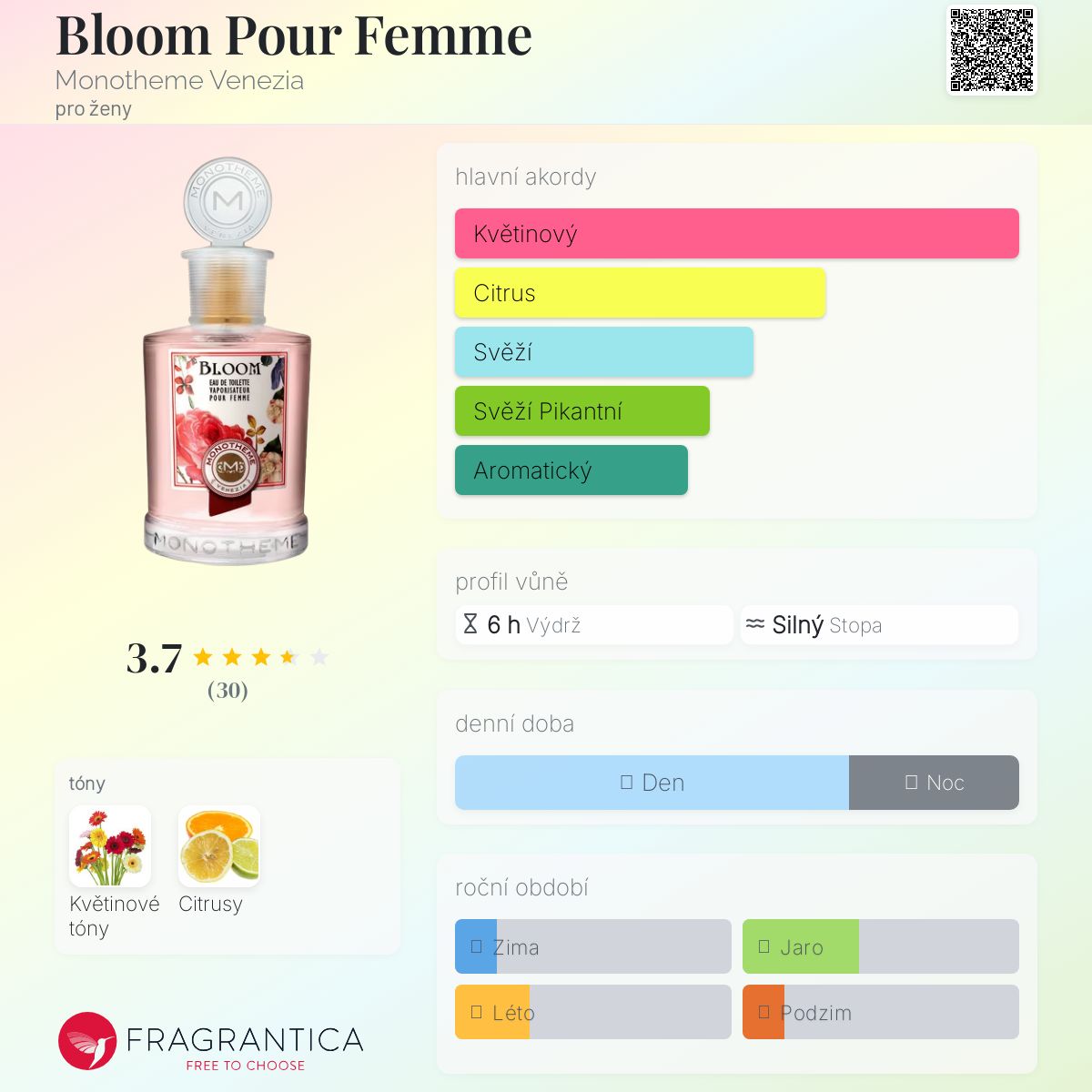 Bloom Pour Femme podle Monotheme Venezia je Floral vůně pro ženy. Bloom Pour Femme byl/a uveden/a v roce 2019.