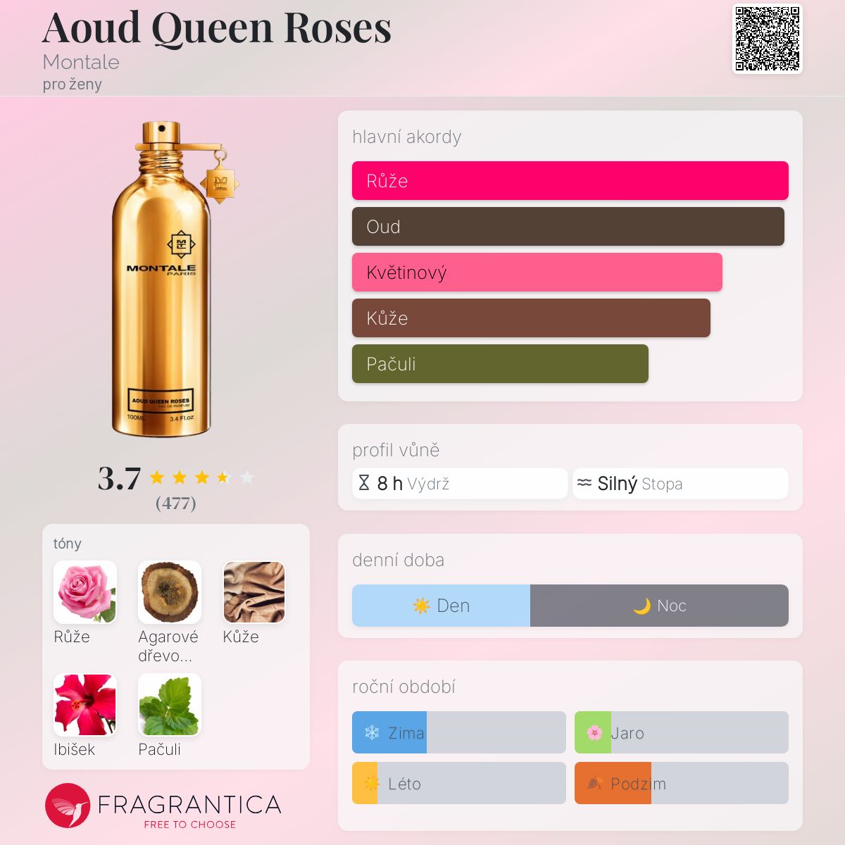 Aoud Queen Roses podle Montale je Floral Woody Musk vůně pro ženy. Aoud Queen Roses byl/a uveden/a v roce 2007. "Nosem" za touto vůní je Pierre Montale.