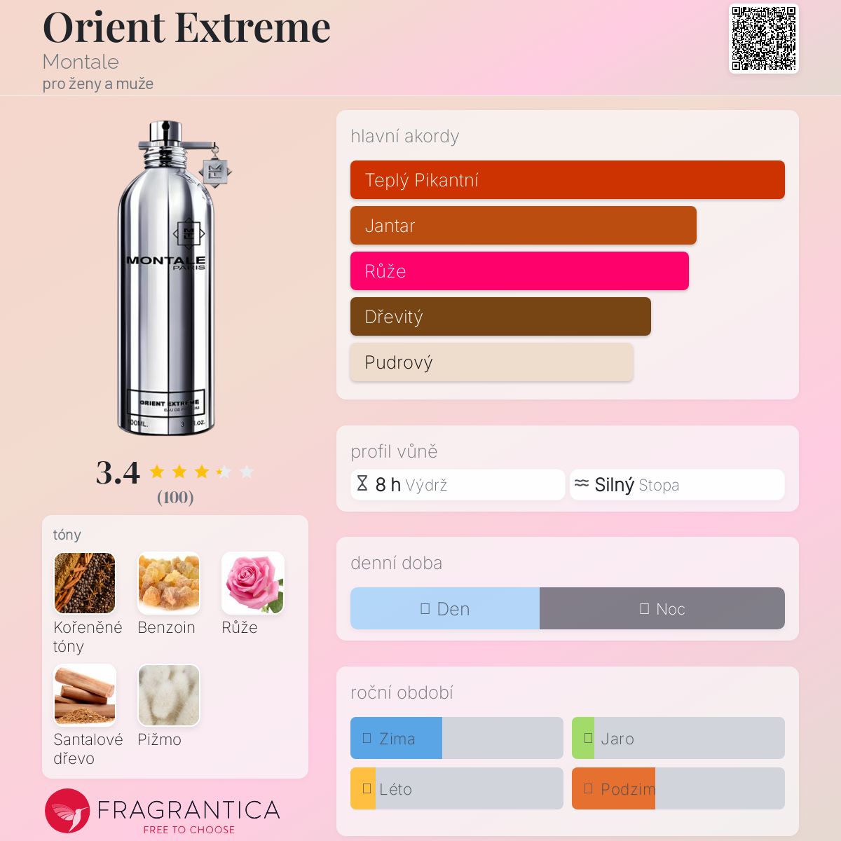 Orient Extreme podle Montale je Orientální Woody vůně pro ženy a muže. Orient Extreme byl/a uveden/a v roce 2005. "Nosem" za touto vůní je Pierre Montale.