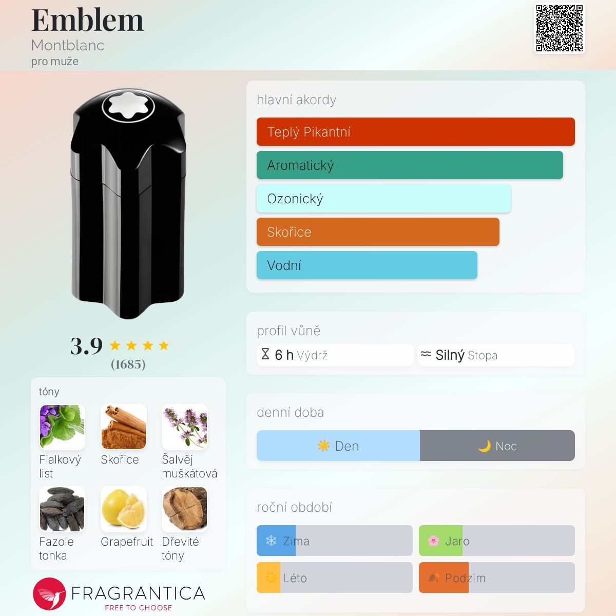 Emblem podle Montblanc je Aromatic Spicy vůně pro muže. Emblem byl/a uveden/a v roce 2014. Emblem byl/a vytvořen/a Sonia Constant a Olivier Pescheux. Vrchní tóny jsou Šalvěj muškátová, Grapefruit a Kardamom; střední tóny jsouFialkový list a Skořice ; základní tóny jsou Fazole tonka a Dřevité tóny.