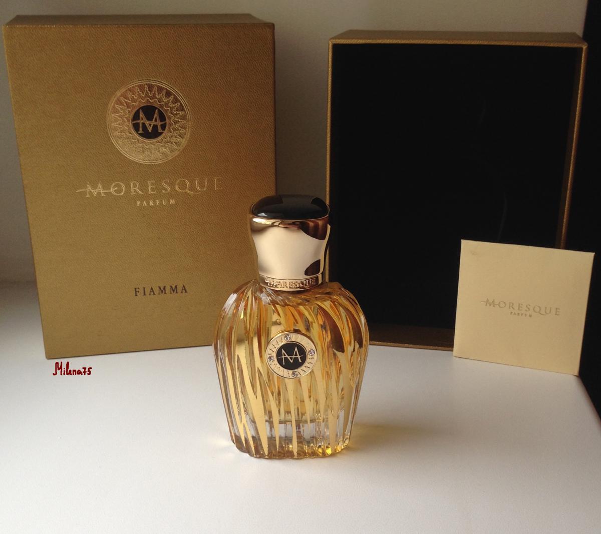 Fiamma podle Moresque je Woody Aromatic vůně pro ženy a muže. Fiamma byl/a uveden/a v roce 2016. "Nosem" za touto vůní je Andrea (Thero) Casotti. Vrchní tóny jsou Kosatec, Jalovcové bobulky a Cypřiš; střední tóny jsouMyrha a Pačuli ; základní tóny jsou Jantar (ambra), Vanilka, Med, Pryskyřice, Kůže a Pižmo.