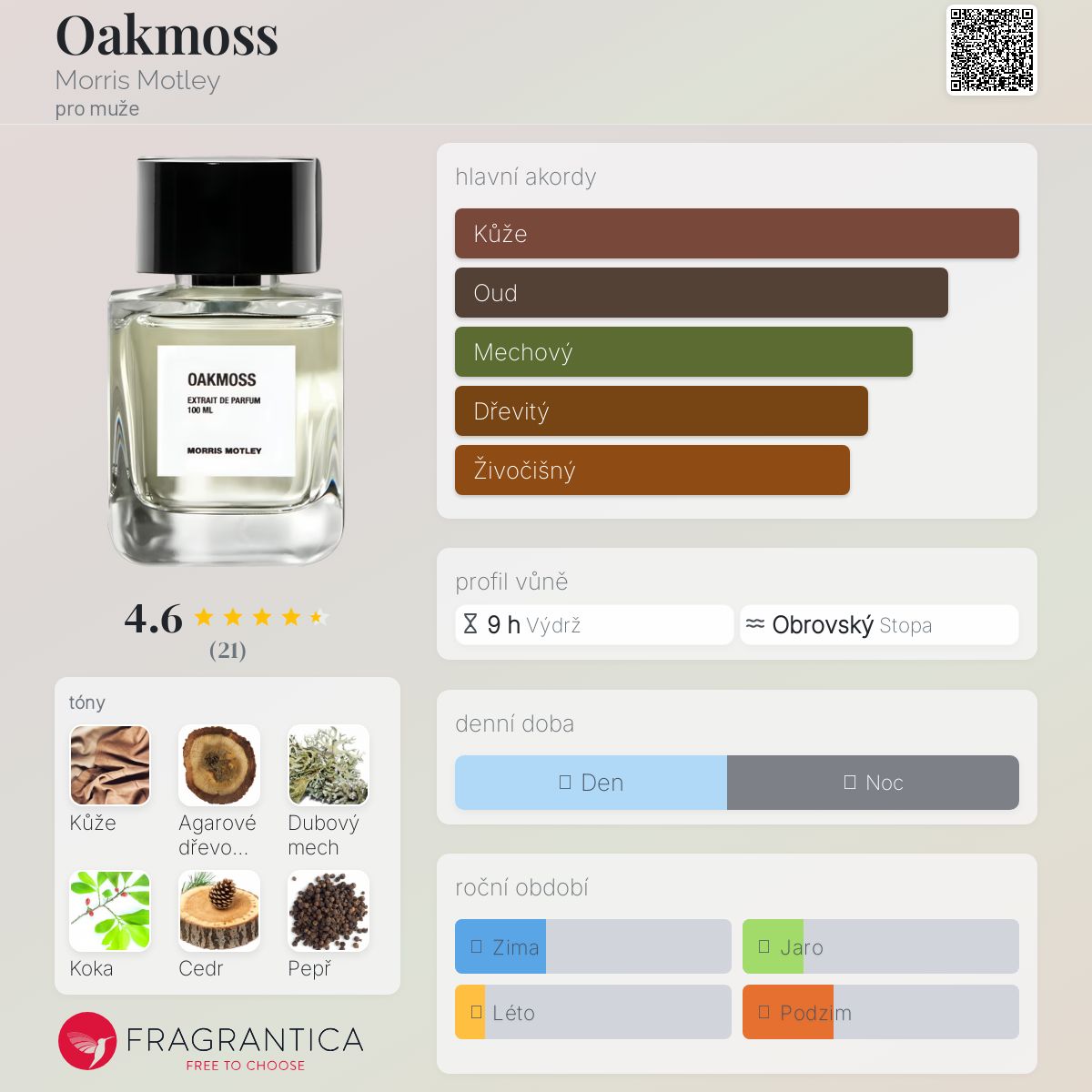 Oakmoss podle Morris Motley je Leather vůně pro muže. Oakmoss byl/a uveden/a v roce 2020. "Nosem" za touto vůní je Karine Vinchon Spehner.