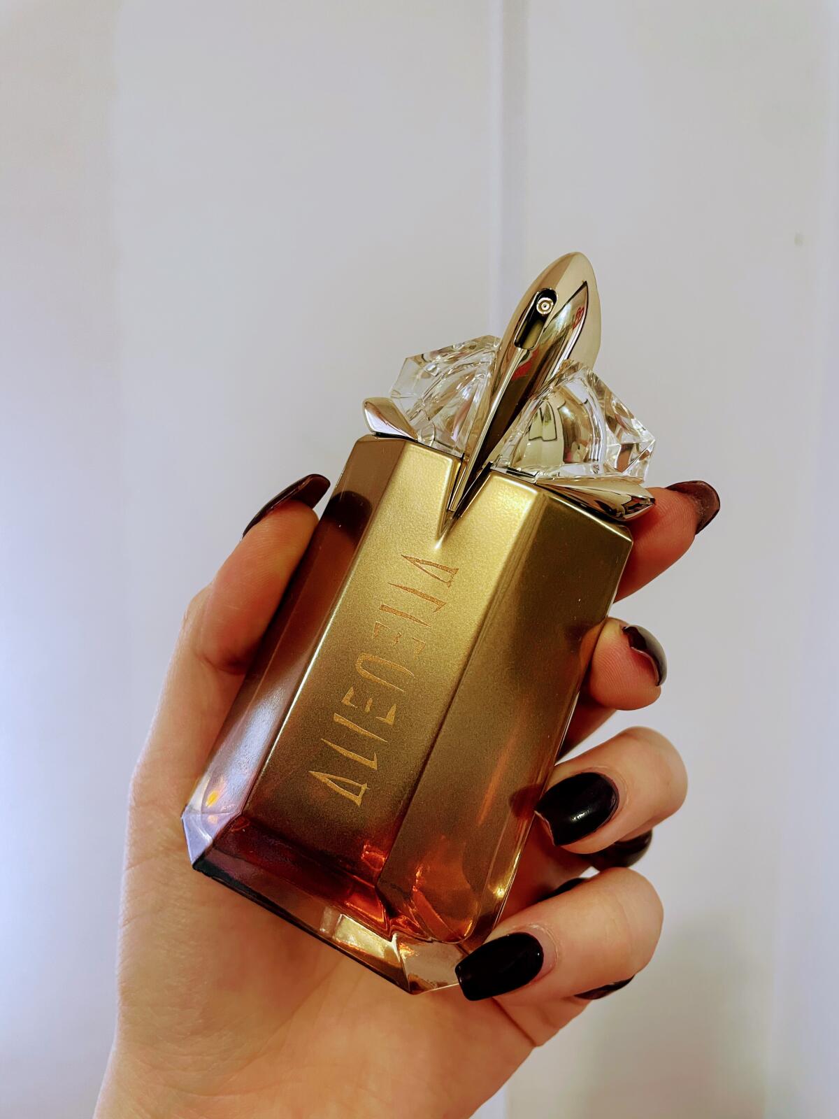 Alien Goddess' je parfém, který se mi líbí, ale nekupuji si ho, protože se na mé pleti špatně nanáší. Když oznámili, že vyjde tato verze, byla jsem nadšená, a ještě víc, když jsem viděla, že je volena jako parfém podobný 'Alien Essence Absolue', mému oblíbenému parfému Mugler, ale nebudu si dělat naděje.