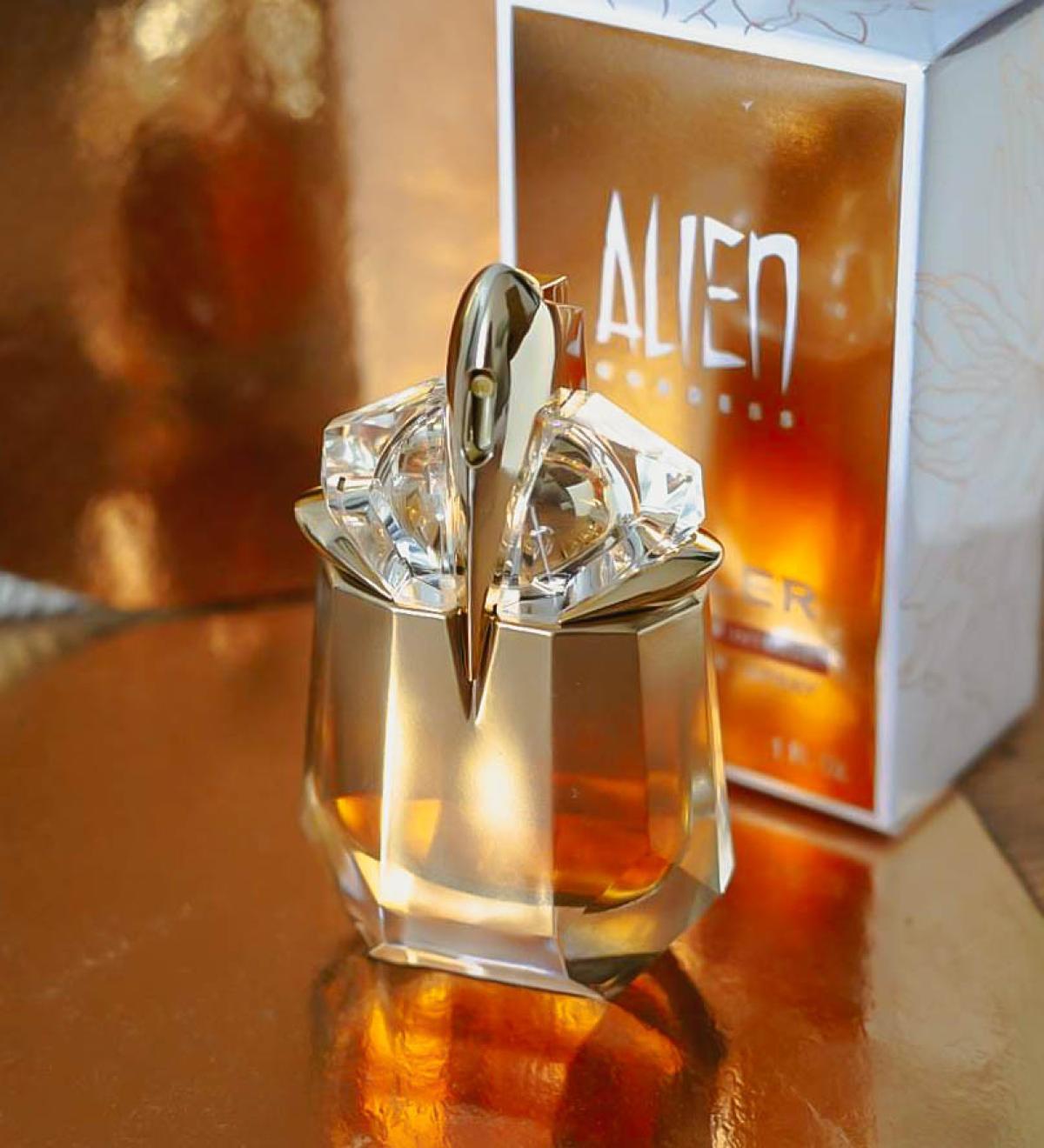 Je to ženský parfém, nic nového, ale docela sexy, který se dá nosit v každém ročním období a téměř při každé příležitosti, i když bych ho nedoporučovala do uzavřeného prostředí, zejména v horkém podnebí, protože může být závratný. V porovnání s Goddess EdT je tato nová verze velmi podobná, ale je více dřevitá a květinová. Na můj vkus postrádá onu "lacinou" krémovost, kterou má OG, což je pravděpodobně způsobeno přílišným množstvím kašmíru. Přijde mi příjemnější než EdT a hodně mi připomíná Terracottu od Guerlainu, i když ta mi přijde jako sofistikovanější parfém a tato Alien je trochu hravější.