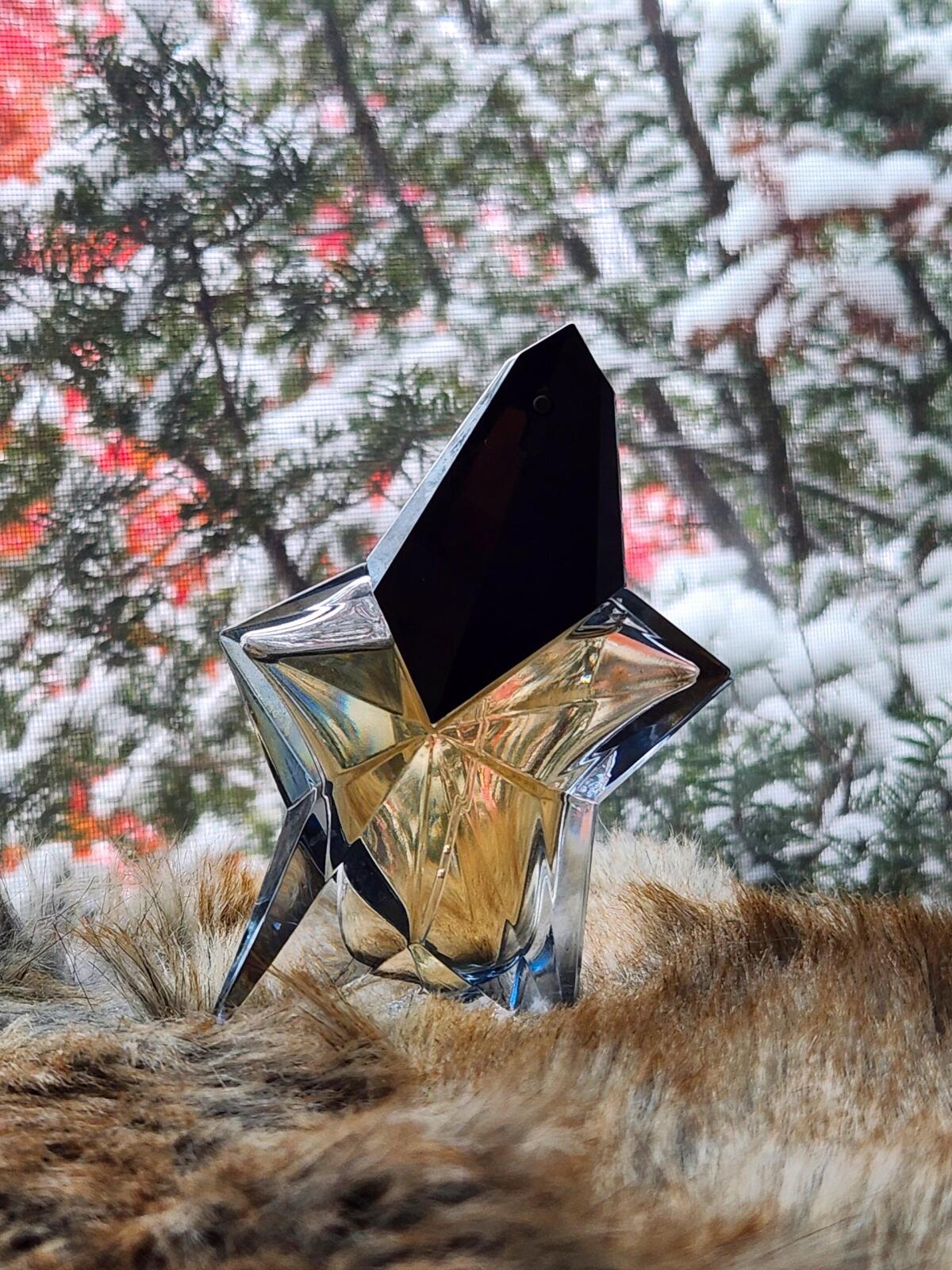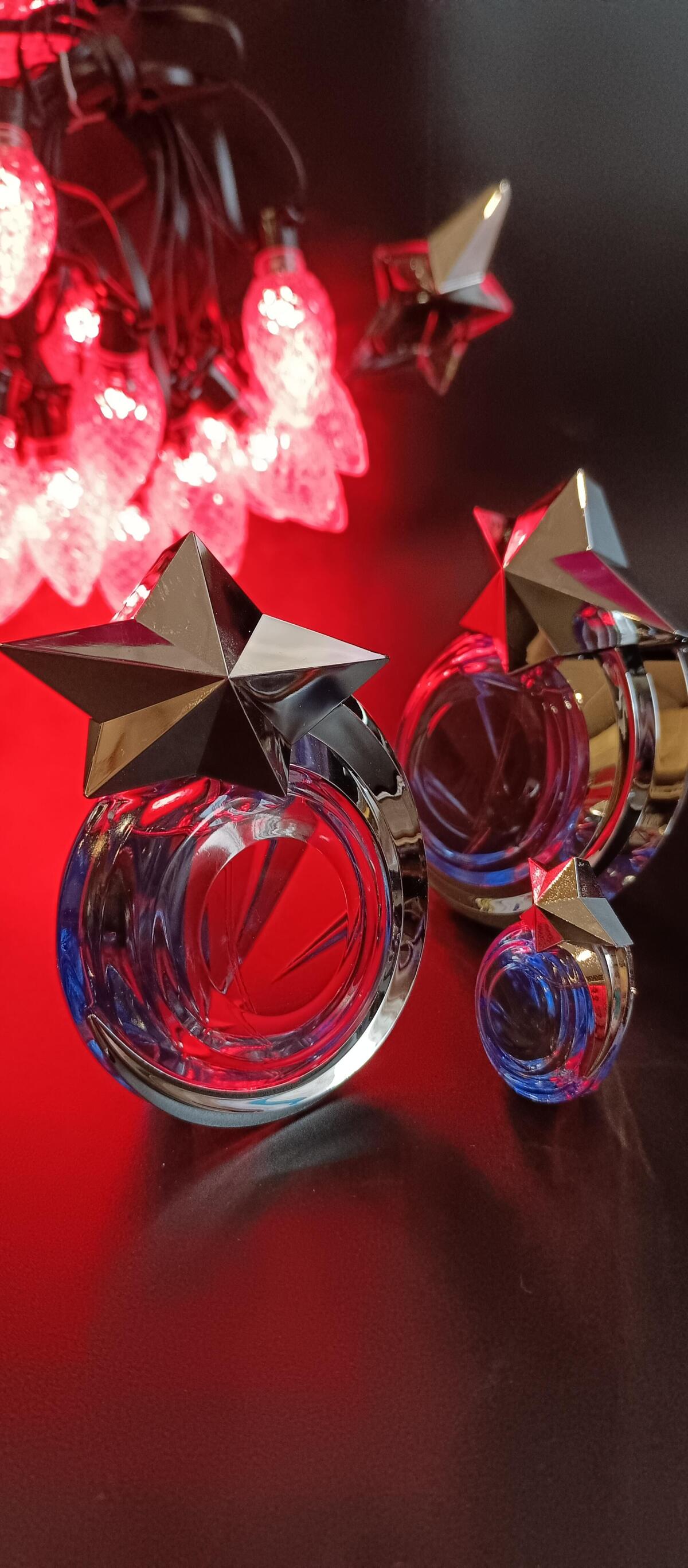 Nevím, jestli bych měl k tomu, co už bylo o Angelovi řečeno, ještě něco dodávat. Komentářů k němu se dá přečíst nekonečně mnoho. Ale tahle vůně mě zaujala na celé ty novoroční svátky a celou dobu mám chuť si o ní s někým popovídat. Dostala jsem ji jako dárek od manžela, kterého už nebavilo poslouchat moje fňukání: "Já ji chci, já ji chci, já ji chci, já ji chci, já ji chci, já ji chci, já ji chci, já ji chci, já ji chci, já chci Angel!". Předtím jsem ho nevyzkoušela, neznala, chtěla jsem na základě popisu a recenzí. četla jsem o něm tolik, že už jsem si představovala, co to je, a říkala jsem si, že ještě kousek a začnu to cítit. Ale v životě se ukázalo, že je to mnohem hlubší, tajemnější a zajímavější, než si to dokáže představit i ta nejbohatší fantazie. Není to vůně, ale nějaký intimní příběh, který vypráví jen vám. Bez textu je velmi krásná a stabilní, třpytící se a hrající, zapamatovatelná od prvních vteřin a poznáte ji už od 1000. Je jí 20 let, ale není klasická ani retro, je velmi trendy! Vůni jsem cítila na všech našich letošních novoročních výletech a nikde nezůstala bez povšimnutí. Aplikuji si ji v mikrosprejích na zápěstí a dekolt a užívám si její zbytky na oblečení. myslím, že je to můj první "mast hav", jak se říká.
