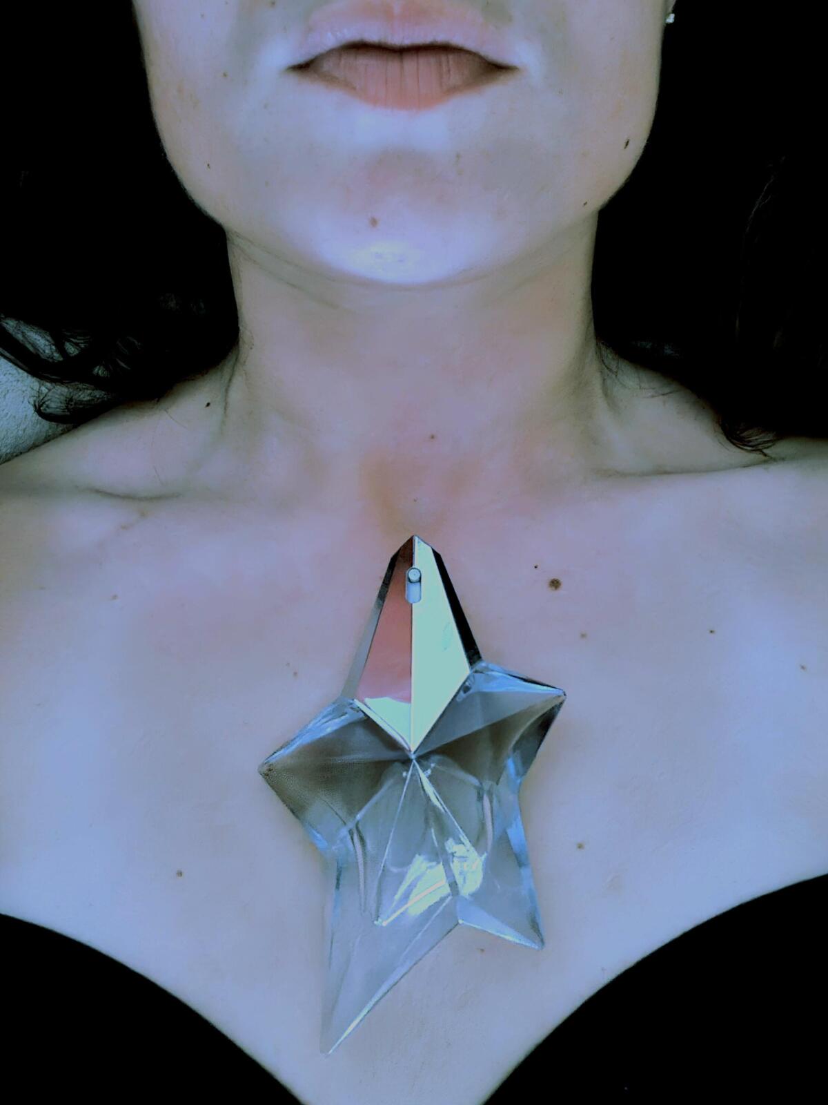 Chtěla bych vyzdvihnout jeden detail, a to, jak špatně si Angel bere celou líheň jím inspirovaných dětí. Jde to ruku v ruce s tím, že jejich konzumentům připadá Angel často strašně odpudivý... a Angel nemá nic společného s tím, čemu se dnes říká gurmánský parfém. Flowerbomb, Nina, La vie est belle, Miss Dior Cherie nebo Poison Girl, všechny tyto gurmánské výtvory, které definují dnešní ženskou parfumerii, voní jako spálené lékořice smíchané s průmyslově obarvenými malinami. To je základ, i když pak přechází do dalších tónů. Pojítkem mezi nimi je právě ona spálená sladkost. Angel s ní nemá nic společného. Tam, kde jsou ostatní parfémy ploché (málo se hýbou), je Angel v pohybu, je to parfém, v němž se tóny neustále pohybují, tančí, třesou se, kymácejí. Je radost cítit závan Angel, když jdete po ulici, a zároveň si všímat toho ďábelského, nestálého cinkání, toho zvonění, toho cinkání mezi vysokými a nízkými, teplými a studenými tóny, které jsem cítila v tak málo parfémech, které se vám dostane do nosu a přímo vás znásilní. Angela šíleně miluju. Zbožňuji ji. Miluji ji cítit, cítit ji na ulici, být jí omámená. Nevěřím na provinilá potěšení, takže Angel pro mě není provinilým místem. Pokaždé, když k němu přičichnu, užívám si ho jako dítě. Dodává mi dobrou náladu, povzbuzuje mě. Což nemohu říct o tom, co se v dnešní době považuje za gurmánské parfémy. Ty mě štvou.