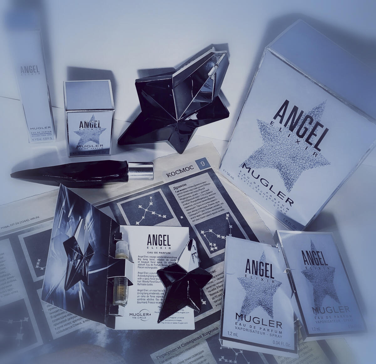 Andělský elixír. "Nejsem Ptolemaiovec, ale zdá se, že některé účty souhlasí. Dobře víme, jak starty fungují už několik let. Člověk využívá úspěchu, proslulosti a jména "staré slávy", aby přišel s Extensions (derivát v alkoholové řadě), Declinations (modifikace receptury, stejný čichový/rozpoznávací podpis, stejné balení) a Flanker (nová receptura, nový čichový podpis, stejné balení s drobnými úpravami). Na tom samo o sobě není nic špatného. Zákazníci často nemají čas dekódovat nové názvy a nové koncepty na trhu velkého množství, takže jedinou možností, jak jim nabídnout odlišné výrobky, jsou tyto metody. Na druhou stranu se to stává špatným z hlediska jiného, mnohem menšího segmentu trhu, a to nadšenců, kteří by chtěli stále nové koncepty, názvy, receptury, obaly atd. Proto existuje umělecká parfumerie, která uvádí na trh stále nové koncepty, názvy, receptury, obaly atd., tj. aby nespokojencům na početném trhu nabídla to, co považují za pro ně vhodné. Trh tedy v jistém smyslu uspokojuje všechny, pokud si obyvatelé dvou největších systémů světa nevymění místa. Pokud se tak stane, dojde ke zkratu: zákazníci Ptolemaiovského systému si stěžují, že Země obíhá kolem Slunce, a zákazníci Koperníkova systému, že Slunce obíhá kolem Země. To je nevyhnutelné. A s vědomím těchto věcí musí hodnotitel parfémů uplatňovat zásadu naprostého relativismu a posuzovat to, co se děje v každém ze systémů, podle jeho pravidel.