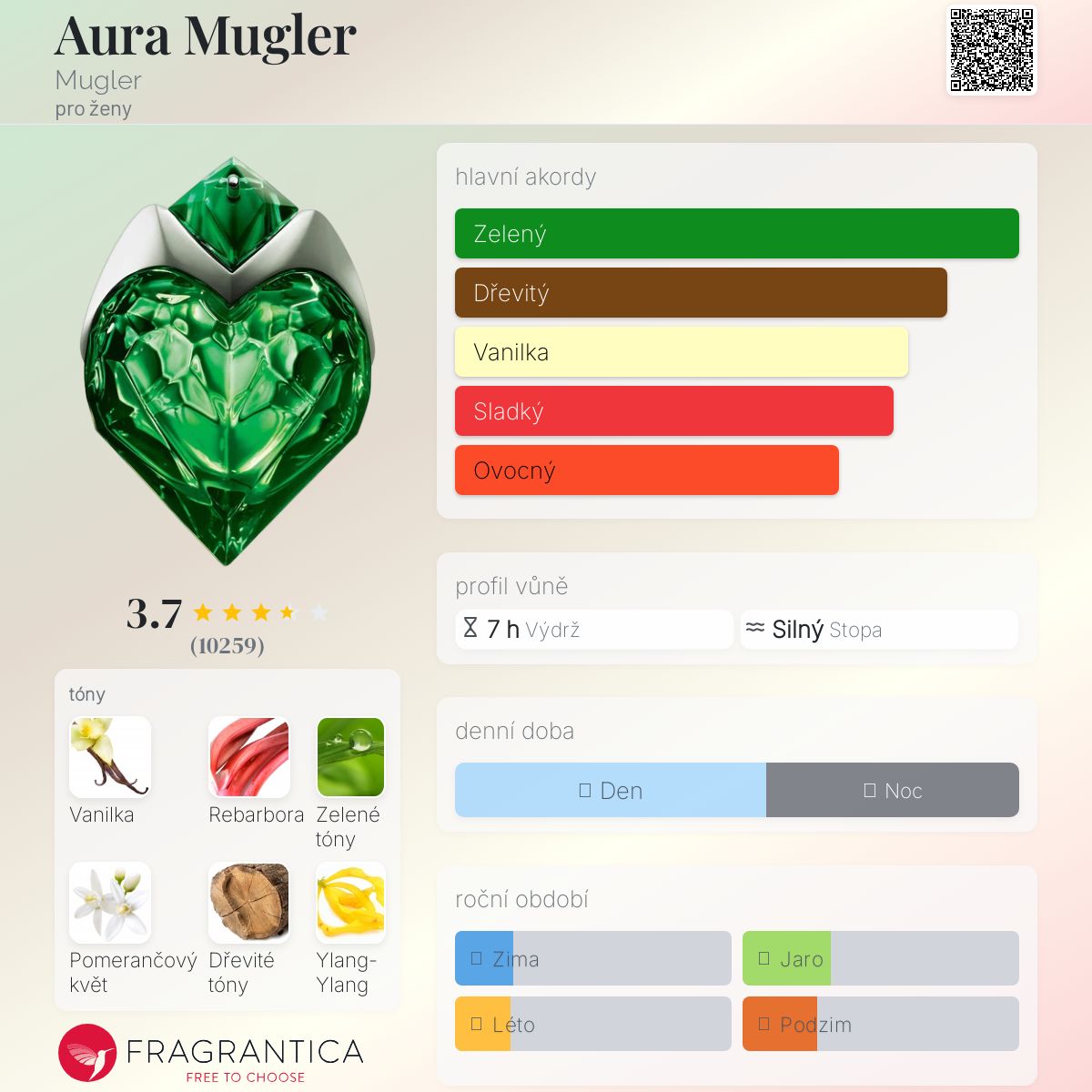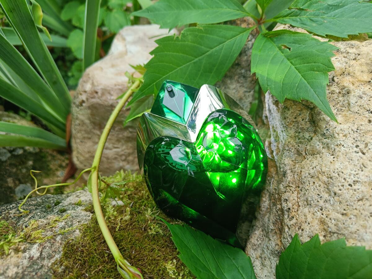 Ale pojďme k věci. Je to opravdu neobvyklý parfém. Moje kůže nebyla cítit gelovkou ani Vickem. Začíná trochu zeleně, trochu "křiklavě" (možná díky rebarborovým listům a zeleným tónům), ale je působivé, jak tento začátek trvá několik vteřin, a pak se zdá, že vanilka tento "zelený večírek" spolu s nádechem dřevitosti zklidní. Na mé kůži nejvíce vynikla vanilka a zůstává taková po mnoho hodin, směs vanilky a máty (i když tento tón nemá), ale působí "hřejivě" a dospěle. Přišla mi svůdná a jiná. Pokud hledáte inovaci, Casa Mugler se na ni specializuje.