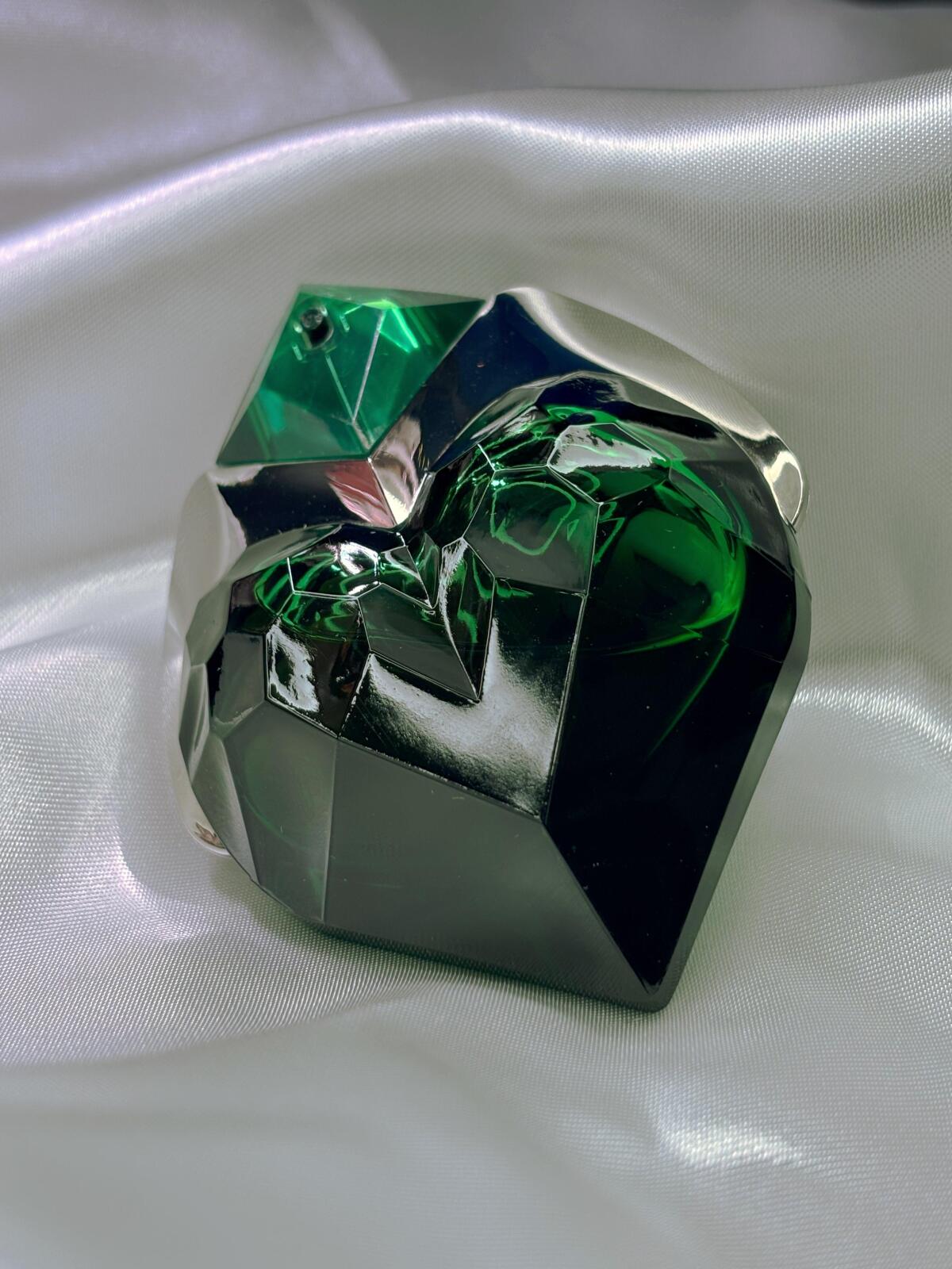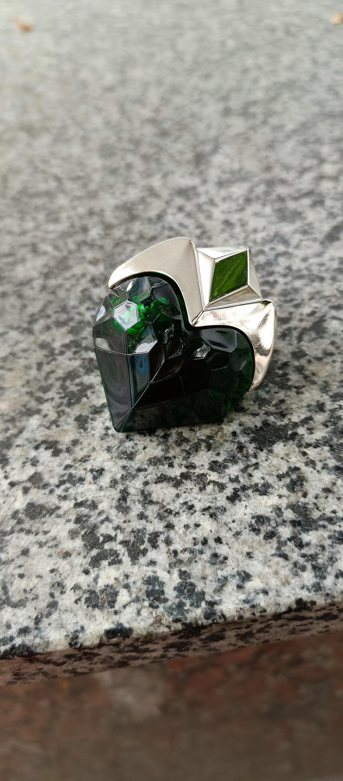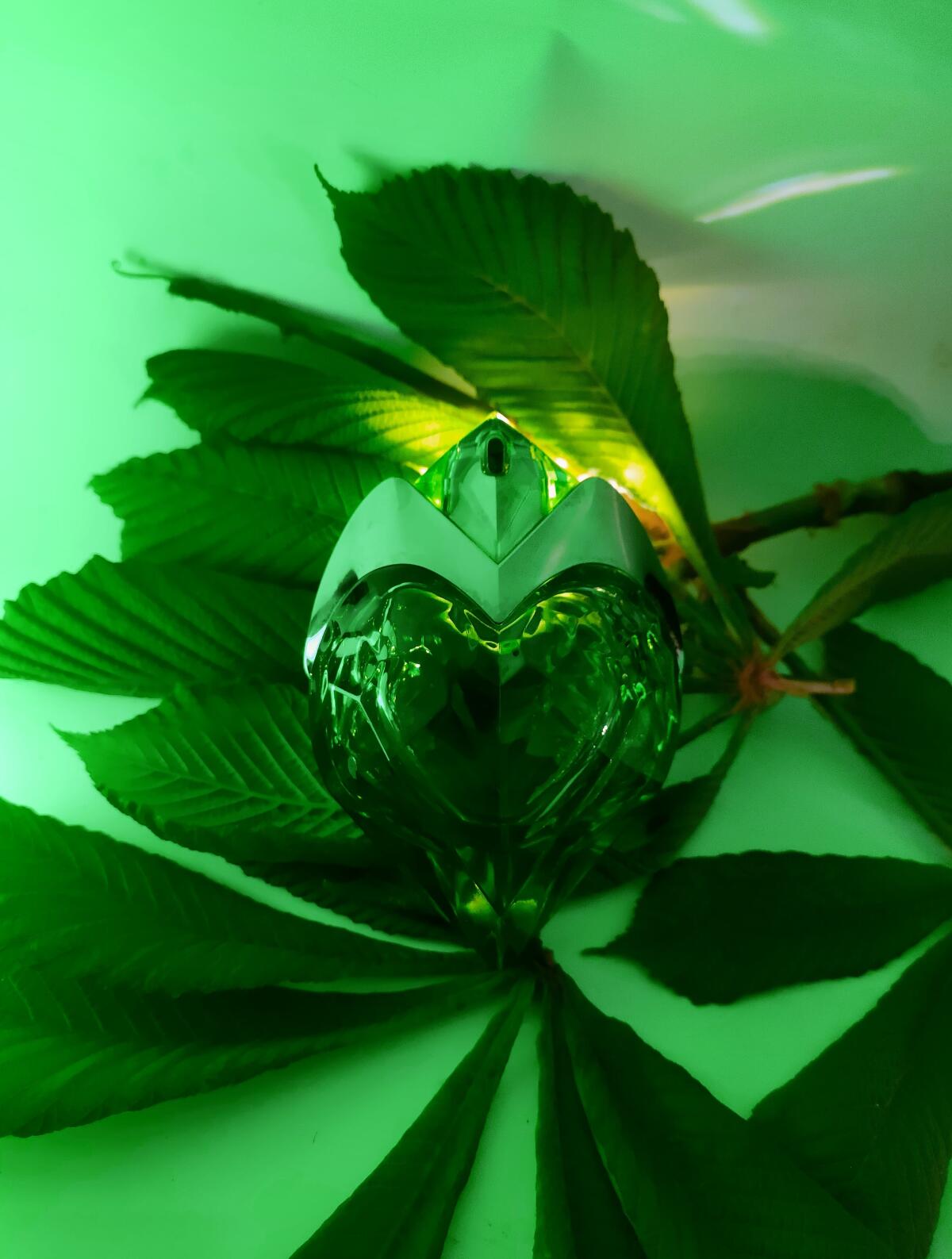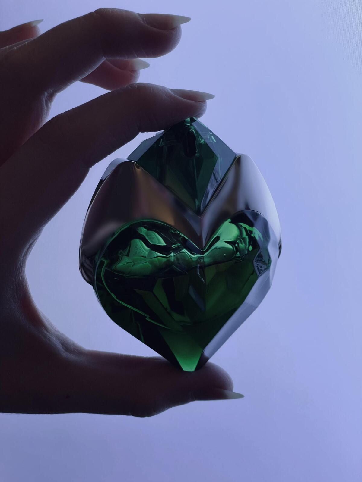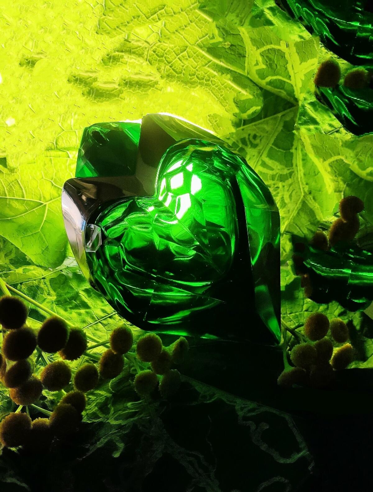 rozpoznatelný mezi tisíci a podle mých omezených znalostí originální. Není v něm nic dřevnatého, žádný tajemný, temný podrost, žádná svěže zelená louka, žádná bujná příroda. Barva jusu je příznačná: vyumělkovaná a umělá zelená, připomínající mi lví postrach (nebo jiné fluorescenční koktejly), mátový sirup do břečky, průmyslovou pistáciovou zmrzlinu, balonky a všechny ty ďábelské věci, které v sobě nemají nic přírodního. Zelená ano, dokonce i metaforicky, ale zelená jako zvýrazňovač nebo světelný neon. Jasná, trochu kyselá a mýdlová, pak nasládlá tahle vanilková rebarbora, ani opravdu sladká, ani hořká. Syntetické tóny, drzé plastové syntetiky. Muglerovská syntetika, která se vůbec neskrývá. Žvýkavá jako bublina drahé staré křišťálové koule, krémová ano, ale jako pongo nebo sliz, to, čemu jsme před deseti lety říkali šifidol. Okamžitě poznáte, že je to Mugler. Na první pohled zvláštní, celý den jsem se snažila přijít na to, co mi to sakra připomíná, ale je to záhada, ne parfém, který už stejně vyšel. Považuji ji za dobrou vůni pro deštivé dny, zdá se mi, že rozzáří šedou, vlhkou oblohu úplně jiným světlem než slunce, zvláštním, moderním světlem obrazovek a osvětlených nápisů. I způsob, jakým člověka zahaluje, je zvláštní, její cizokrajně zelená aura není ani teplá, ani studená, je to kříženec mezi krémovou a kovovou, léčivou a vzdušnou, jakési výpotky přítomné, ale člověku zcela cizí, odzbrojující postmoderny. Obal je stejně kýčovitý jako pro mé oči přitažlivý. Ti, kteří tvrdí, že v dichotomii mimozemšťan/anděl stojí tato na straně toho prvního, mají pravdu. Ne, není to tak jednoduché, chvíli mi trvalo, než jsem přišel na to, jaké je podle mě jeho nejlepší využití. Trochu zavádějící byla reklama, ze které jsem vydedukoval vůni tajemné a svěží flóry. Je v ní cosi zlého: ale nebezpečí, která připomíná, nejsou ta přírodní a atavistická, ale ta, která se skrývají za líbivými a barevnými mechanismy současných zábav. Kdyby to bylo město, bylo by to Las Vegas, zcela a nenapravitelně vymyšlené, trochu kýčovité svou přebarvenou a hlučnou okázalostí, ale právě proto přitažlivé a zvláštní. Kdyby to byl člověk, byl by to Andy Warhol. Připadá mi pozoruhodný svou jednoduchostí a cílevědomostí, přitahuje pozornost a nikdy nepřestává být kontroverzní. Kdo by kdy chtěl jeho vůní vyvolávat vzpomínky na algoritmy, zvonící automaty, mýdlo na nádobí, žárovky, léky? Přesto mi tato aura, která nakonec působí trochu halucinačně, nevadí, i když mi trvalo měsíce, než jsem ji pochopil. Nazval bych to plastem a diamanty (vypůjčil jsem si název písně jednoho mého známého). Potěšilo by to mého (velmi popového) profesora estetiky, podle něhož "zboží je dobrá věc" a Nolanův Batman je skoro stejně filozofický jako Kant. Samozřejmě to neznamená, že je to můj oblíbený parfém, je specifický a ne každý z něj má dobrý pocit, včetně mě, nevím, jestli bych si ho koupila, je tak "divný"... Vím, že si na jeho vůni musím zvyknout, ale prozatím mi dokázal v hlavě vyvolat celý svět, nekonečnou řadu obrazů, a proto si ho vážím a jsem ráda za jeho existenci, přestože mé vjemy jsou jen osobní interpretací, jistě na hony vzdálenou oficiálnímu pojetí. Po mnoha hodinách, na konci hry, zůstává na kůži zaprášená vanilka, mnohem standardnější, ale příjemná, trochu mi připomíná heliotrop: je to znamení, že kouzlo se pomalu láme, jeho čas je téměř u konce.