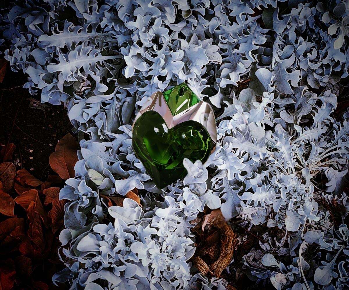 Druhá je květinové srdce, které je exfoliační, rostlinně postavené na předávkování rebarbory, což je zelenina podobná mangoldu s tmavě červeným stonkem, který působí jako ovoce, je sladce dávkovaná ve složení a neroli obě kombinované destilované s molekulou tvoří patentovanou mutaci pro Muglera.