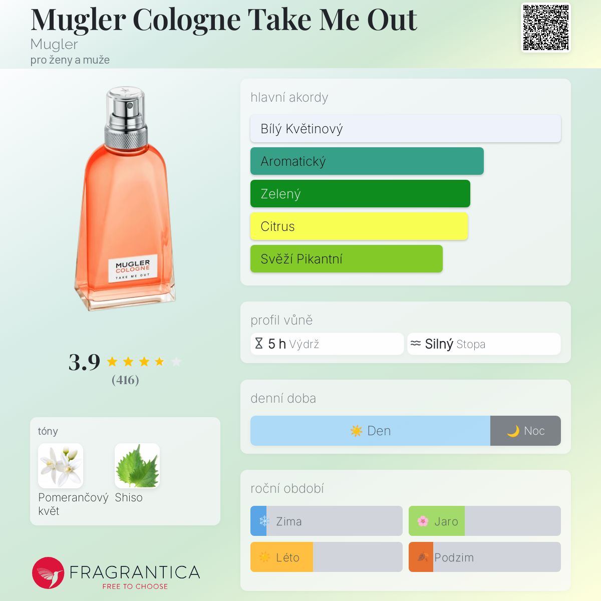Mugler Cologne Take Me Out podle Mugler je Floral vůně pro ženy a muže. Mugler Cologne Take Me Out byl/a uveden/a v roce 2018. "Nosem" za touto vůní je Jean-Christophe Hérault.