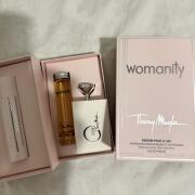 Womanity je kyselá, slaná a sladkokyselá (vše najednou) ovocná směs šťavnatého zralého ovoce (ne tak jednoznačně fíků) s jodovanou, kovovou, krví v ústech, kterou možná mnozí nenávidí, ale nemálo lidí podlehlo jejímu kouzlu. Více než 10 hodin v kůži podporuje značku Mugler, kde si tento odlišný a svérázný klenot, který často nestrhává komplimenty pro svou tak nepochopenou a netypickou propozici.
