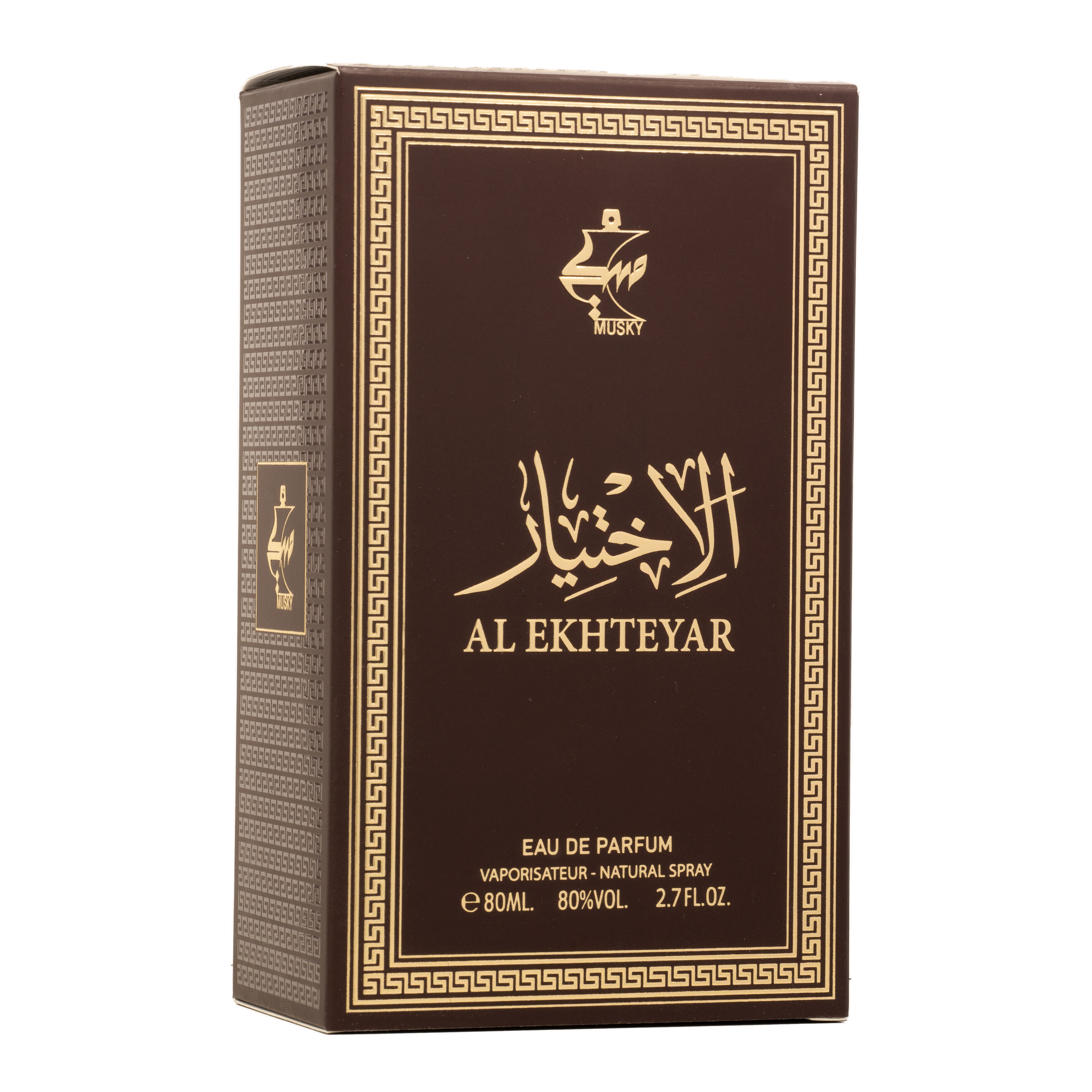 Al Ekhteyar podle Musky je Woody Spicy vůně pro muže. Al Ekhteyar byl/a uveden/a v roce 2022. Vrchní tóny jsou Fialkový list, Kardamom a Máta; střední tóny jsouAnanas, Skořice, Meloun a Šalvěj ; základní tóny jsou Kaštan, Vanilka a Cedr.