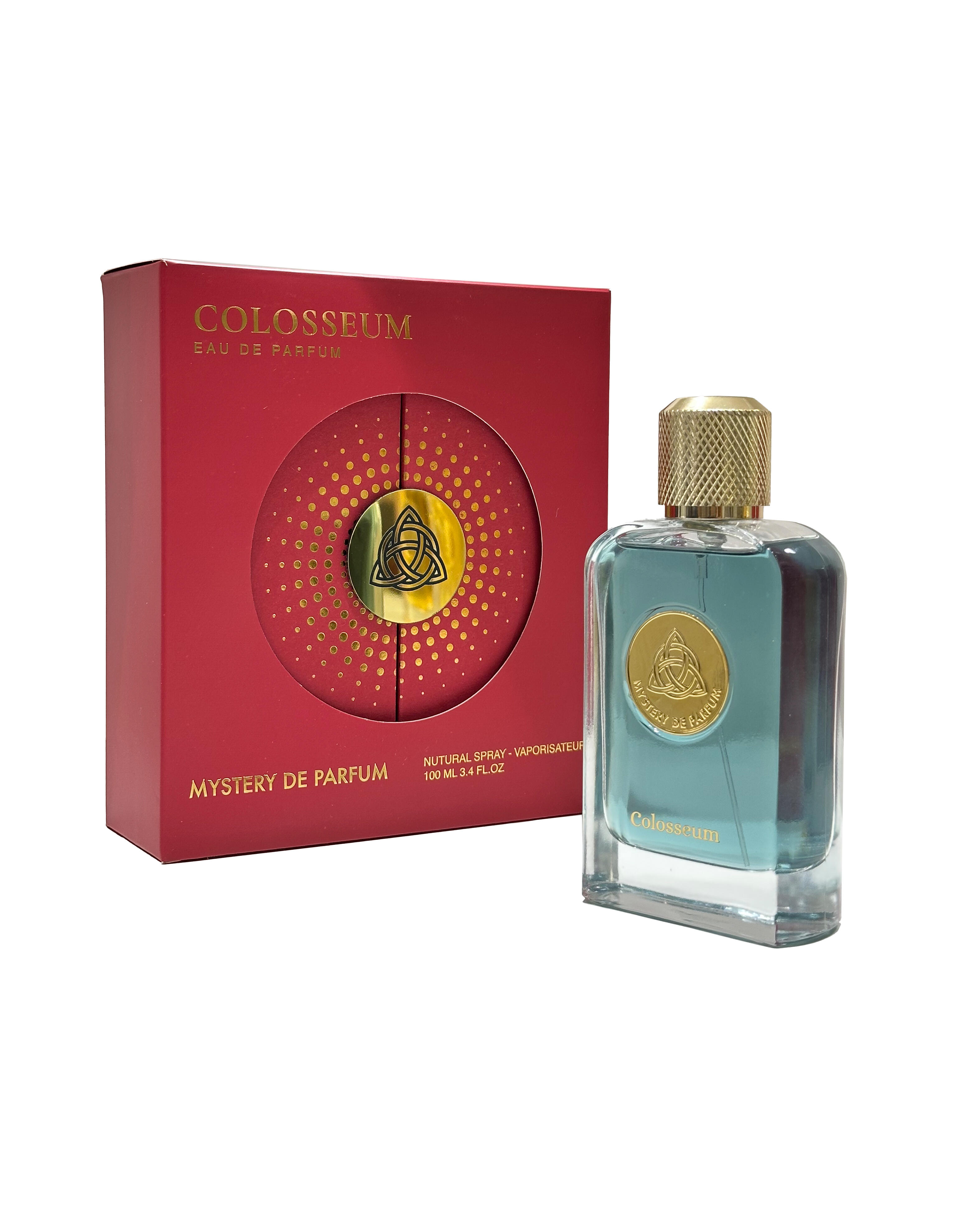 Colosseum podle Mystery De Parfum je Orientální vůně pro ženy a muže. Toto je nová vůně. Colosseum byl/a uveden/a v roce 2025. "Nosem" za touto vůní je Salem Hassan. Vrchní tóny jsou Aldehydy a Pomeranč; střední tóny jsouMed a Pelargónie ; základní tóny jsou Pačuli, Jantar (ambra) a Pižmo.