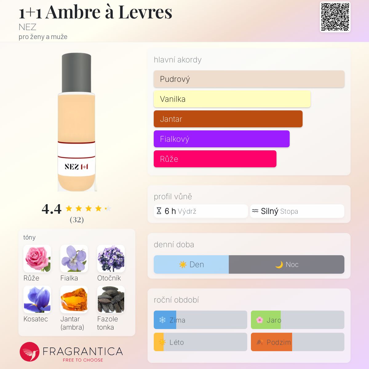 1+1 Ambre à Levres podle NEZ je Orientální Vanilla vůně pro ženy a muže. 1+1 Ambre à Levres byl/a uveden/a v roce 2020. "Nosem" za touto vůní je Mathilde Bijaoui.