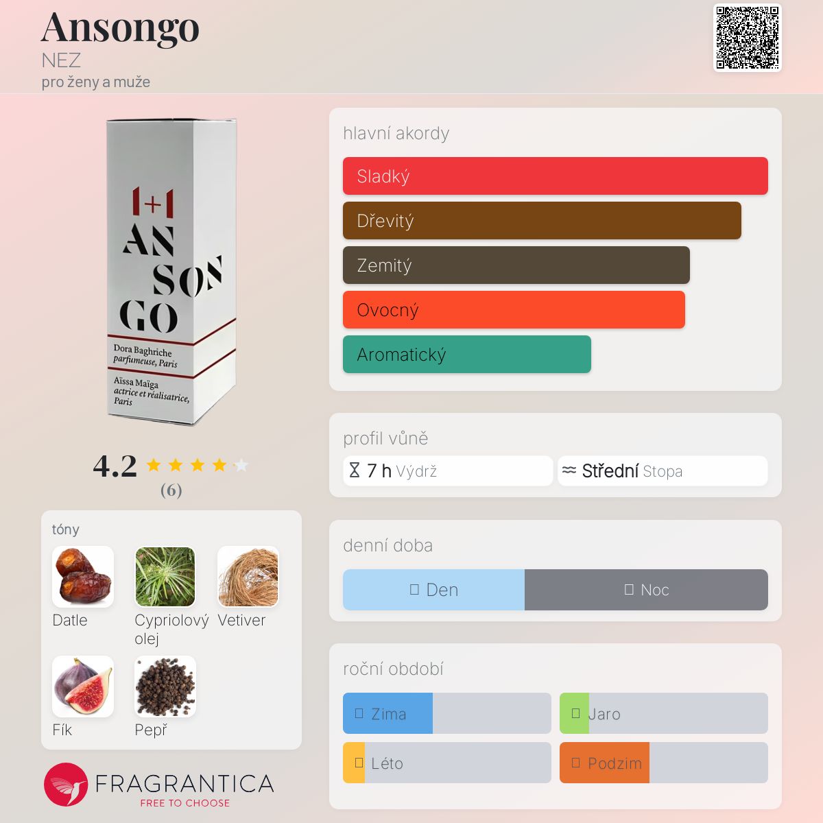 Ansongo podle NEZ je Woody Aromatic vůně pro ženy a muže. Toto je nová vůně. Ansongo byl/a uveden/a v roce 2025. "Nosem" za touto vůní je Dora Baghriche.