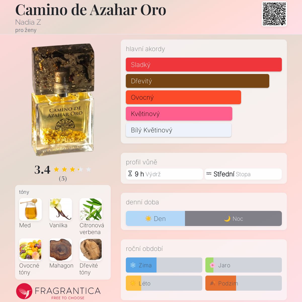 Camino de Azahar Oro podle Nadia Z je Floral Woody Musk vůně pro ženy. "Nosem" za touto vůní je Nadia Zuodar.
