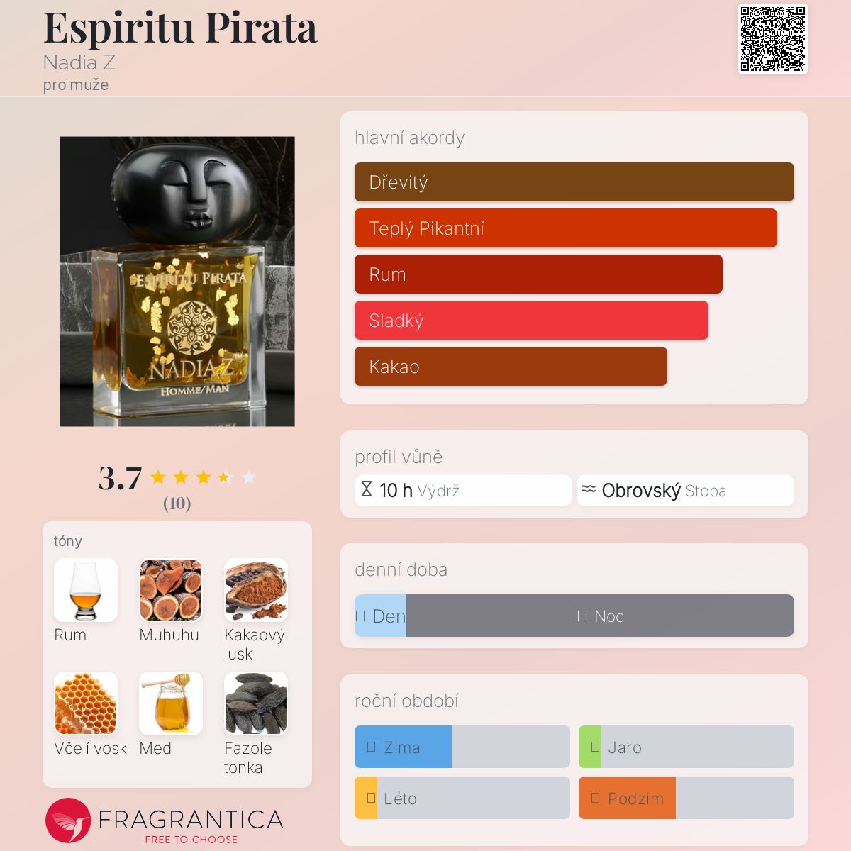 Espiritu Pirata podle Nadia Z je Orientální Vanilla vůně pro muže. "Nosem" za touto vůní je Nadia Zuodar.