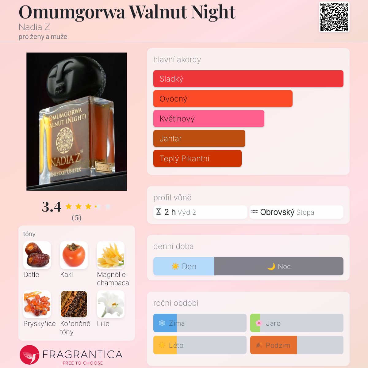 Omumgorwa Walnut Night podle Nadia Z je Orientální Vanilla vůně pro ženy a muže. "Nosem" za touto vůní je Nadia Zuodar.