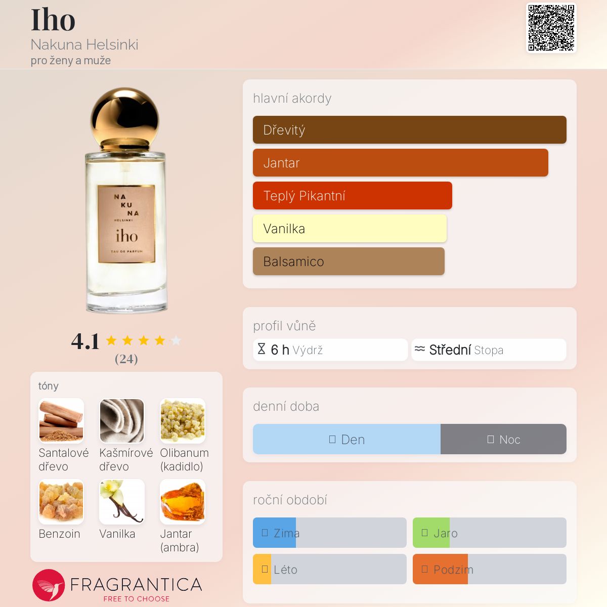 Iho podle Nakuna Helsinki je Orientální Woody vůně pro ženy a muže. Iho byl/a uveden/a v roce 2020. "Nosem" za touto vůní je Yann Vasnier. Vrchní tóny jsou Kašmírové dřevo a Olibanum; střední tóny jsouSantalové dřevo a Guajakové dřevo ; základní tóny jsou Benzoin, Vanilka a Jantar (ambra).