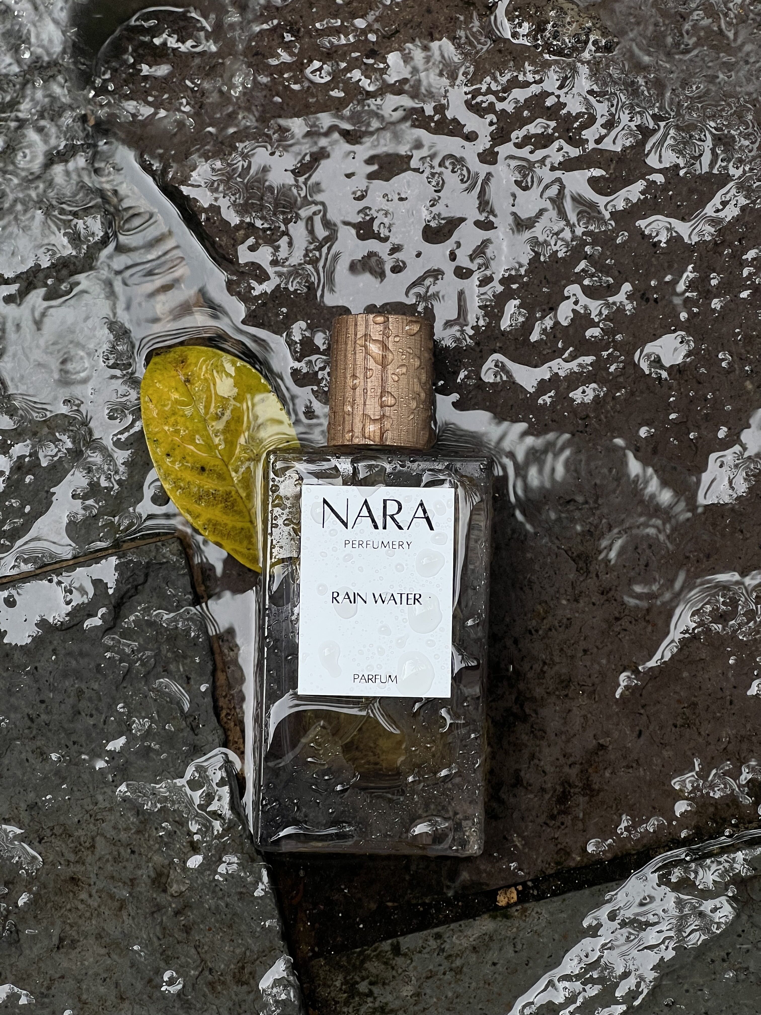 Rain Water podle Nara Perfumery je Woody Aromatic vůně pro ženy a muže. Rain Water byl/a uveden/a v roce 2023. "Nosem" za touto vůní je Nasir Alshimmari. Vrchní tóny jsou Mandarinka, Zelené listí, Černý rybíz, Grapefruit a Citrón; střední tóny jsouKašmírové dřevo, Maliny, Pižmo a Šalvěj ; základní tóny jsou Copaiba balzám, Pačuli, Vetiver, Jantar (ambra) a Pižmo.