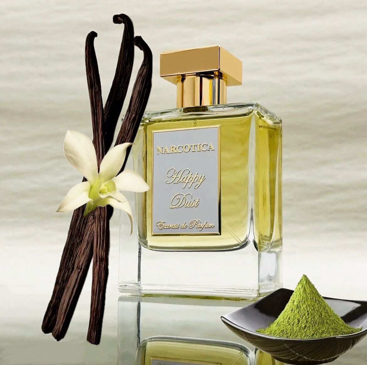 Happy Dust podle Narcotica je Orientální Vanilla vůně pro ženy a muže. Happy Dust byl/a uveden/a v roce 2023. "Nosem" za touto vůní je Claude Dir. Vrchní tóny jsou Bourbonská vanilka, Mango, Kokosová voda a Maté; střední tóny jsouVanilka, Hnědý cukr, Matcha čaj, Jantar (ambra) a Jasmín mnohokvětý ; základní tóny jsou Vanilka, Fazole tonka, Santalové dřevo, Bílé pižmo a Peruánský balzám.
