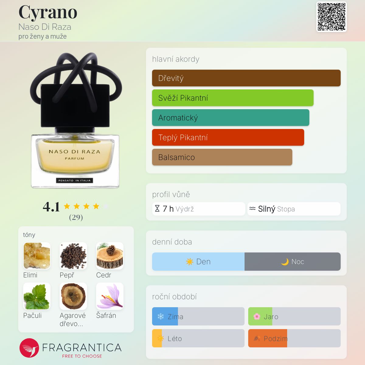 Cyrano podle Naso Di Raza je Orientální Woody vůně pro ženy a muže. Cyrano byl/a uveden/a v roce 2015.