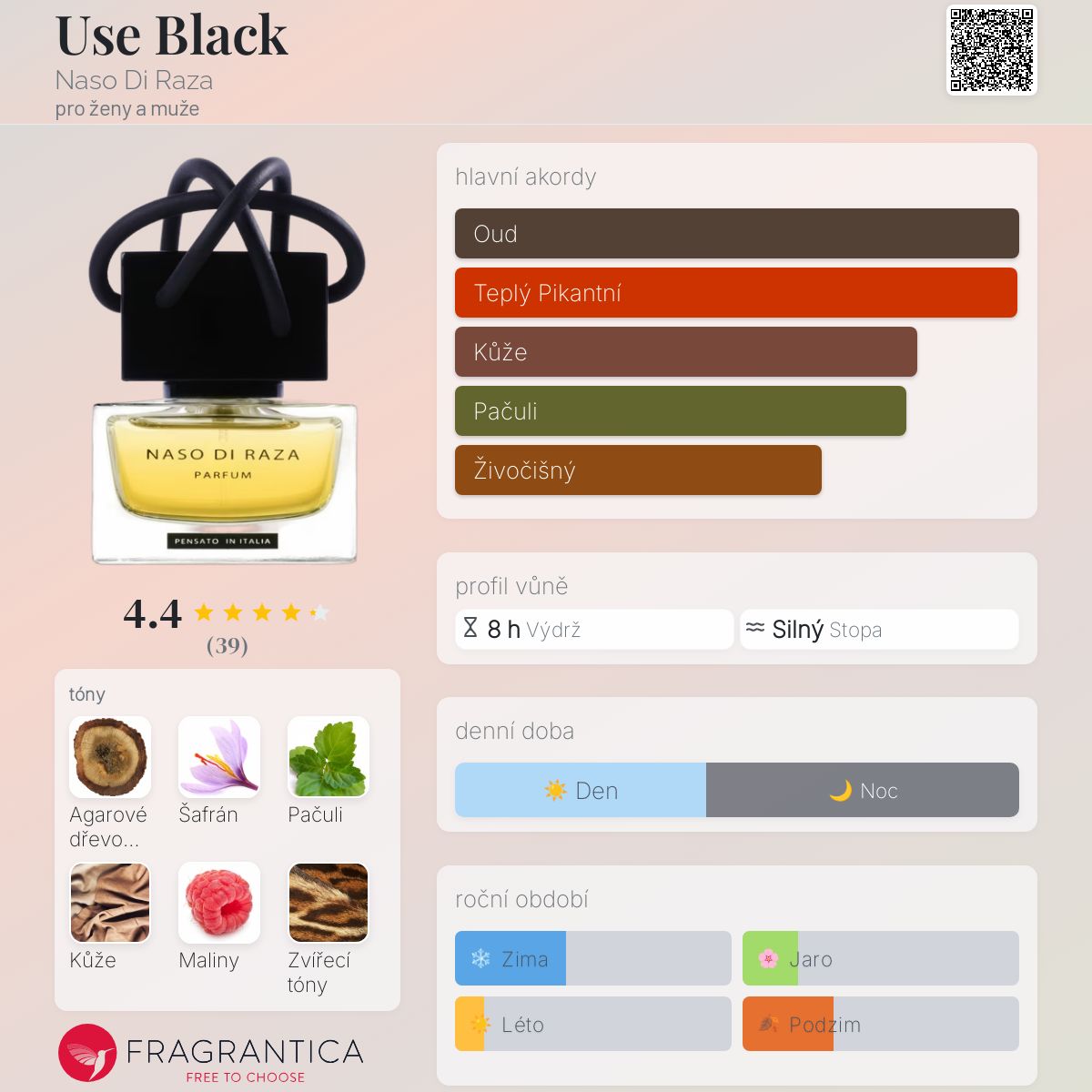 Use Black podle Naso Di Raza je vůně pro ženy a muže. Use Black byl/a uveden/a v roce 2019. "Nosem" za touto vůní je Patrick Bodifee.