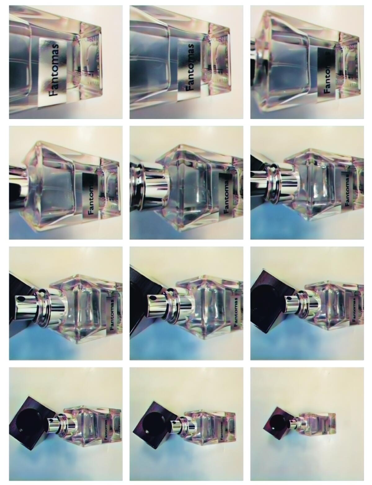Fantomas. Je to postava z "lupičských" románů Pierra Souvestra a Marcela Allaina, kde zloděje gentlemana Maurice Leblanca nahradil padouch par excellence. Od poloviny šedesátých do sedmdesátých let 20. století vznikaly také filmy inspirované marketingem Alessandra Gualtieriho. Jednalo se však spíše o komediální filmy, v nichž je nešikovný policista, komisař Juve, neomylně obelstěn obratným a precizním Fantomasem, který nosí masku modrou jako parfémová tekutina. Proč se tím inspirovat? Gualtieriho záměrem, alespoň jak to vysvětluje, je vytvořit nepolapitelný parfém, stejně jako Fantomas. "Nikdy mě nemůžete skutečně vidět, vždycky mě budete cítit. Moje přítomnost zůstane i poté, co odejdu". A skutečně, vůně má tuto přitažlivost, jistě díky svému trvání, ale především díky své projekci. Fantomas se intenzivně promítá i po mnoha hodinách. Je to parfém s "pomalým uvolňováním", abychom citovali Gualtieriho, přesně jako Seminalis. Také myšlenka vůně je podobná jako u Seminalis: jedním slovem "vařené mléko" s dřevitou strukturou, kterou pravděpodobně vytváří kašmeran, cedrové dřevo a Iso E Super, což dodává kompozici jistou jemnost, stejně jako pocit svěžesti a čistoty (což značně tlumí silnou kašmeranovou vůni Duro). Vrátíme-li se tedy ke konceptu, zdá se, že Gualtieri našel dobrou analogii mezi svým parfémovaným výtvorem a postavou Fantomase. Mě však toto čtení nepřesvědčilo. Více mě přesvědčil Schubertův Schwanengesang, který Gualtieri předvedl v úvodních videích. Tato laktonická vůně na mě totiž působí romantickým a sugestivním dojmem. Proto se mi také velmi líbí. Je sladká a vznešená, přesně jako Schubertova Serenáda, napsaná skutečně "s vytříbenou přesností". Kdybych byl na Gualtieriho místě, nazval bych proto vůni "Schwanengesang", Labutí píseň, místo abych si vzal Fantomas, jakkoli je to výstižné. Kromě této mé odlišné interpretace ji považuji za velkolepou: méně hutnou než Seminalis a rafinovanější než Duro.
