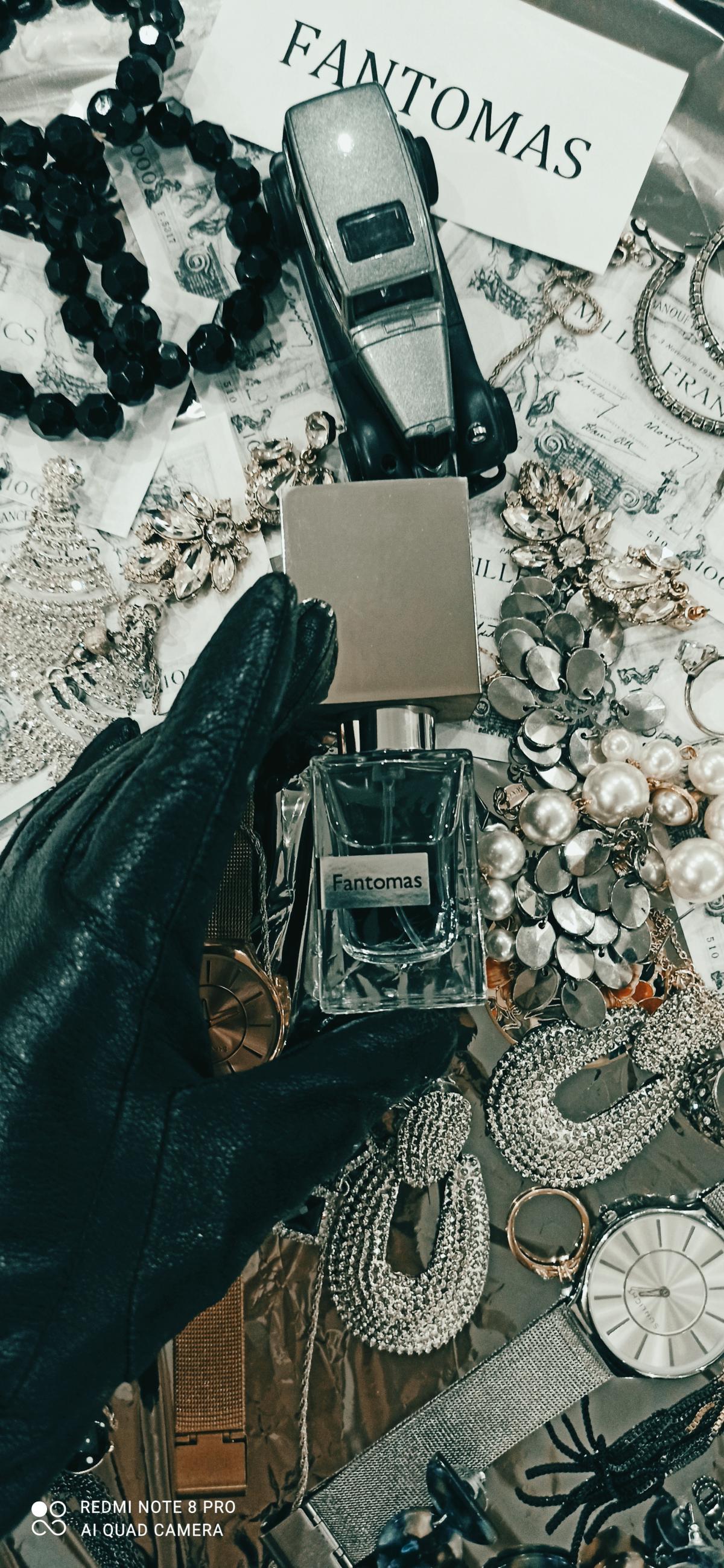 Fantomas je velmi syntetická, ale podle mě je to úžasný příklad syntetické parfumerie provedené dobře. Když si k Fantomas přivoním, v mysli se mi vybaví silný obraz nějakého předmětu. Vůně mi připomíná stříbrnou revolverovou pistoli. Tento parfém by se klidně mohl jmenovat Chrome... kdyby tento název parfému už nebyl použitý. Na začátku je velmi kovová s nádechem bobulovitého plného ovoce, melounu a gumového tónu, který ve mně téměř vyvolává představu tvrdé gumové rukojeti nebo rukojeti revolveru. Velmi mě šokovalo, když si k ní někteří přivoněli a zachytili z ní mléčnost. Téměř vnímám, o čem mluví, ale pro mě je tam zemitá, půdě podobná vůně a také kouřovost, která je velmi znatelná a dává tušit střelný prach.