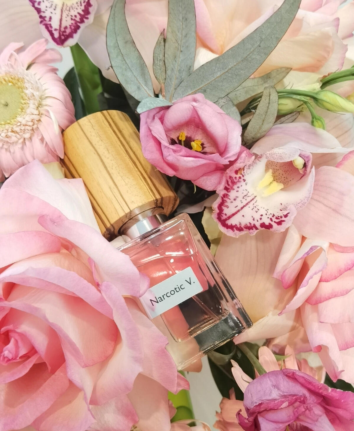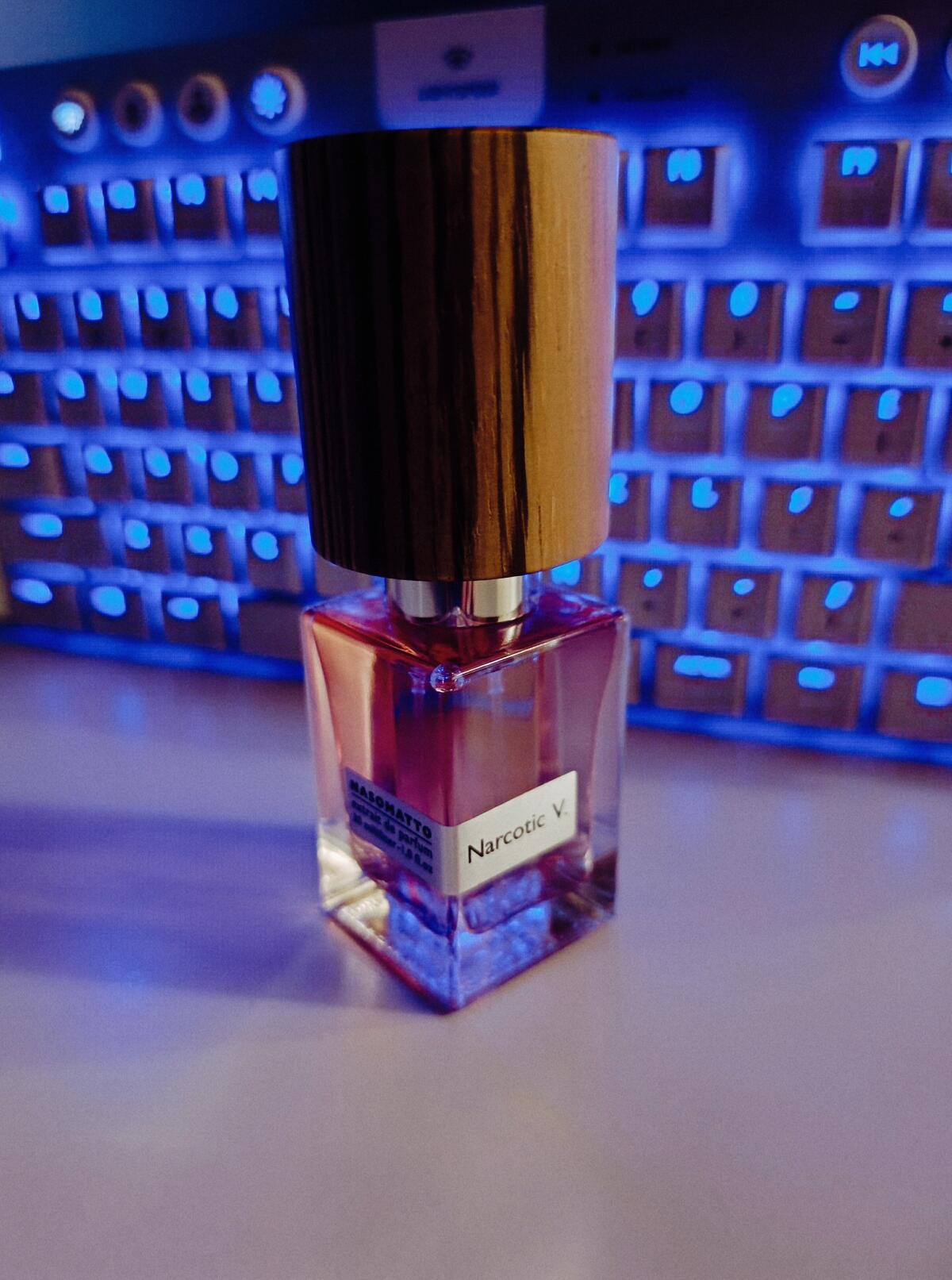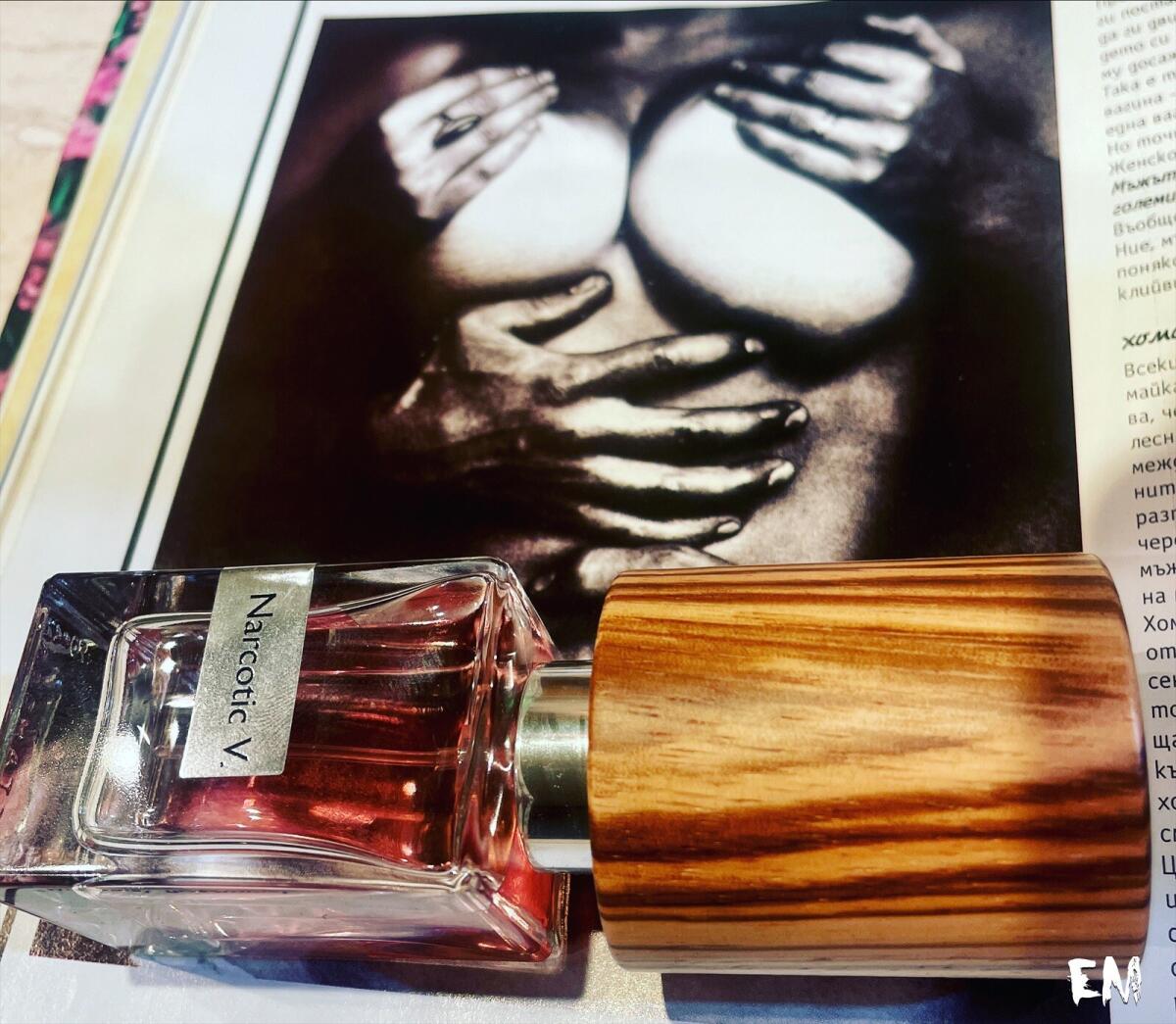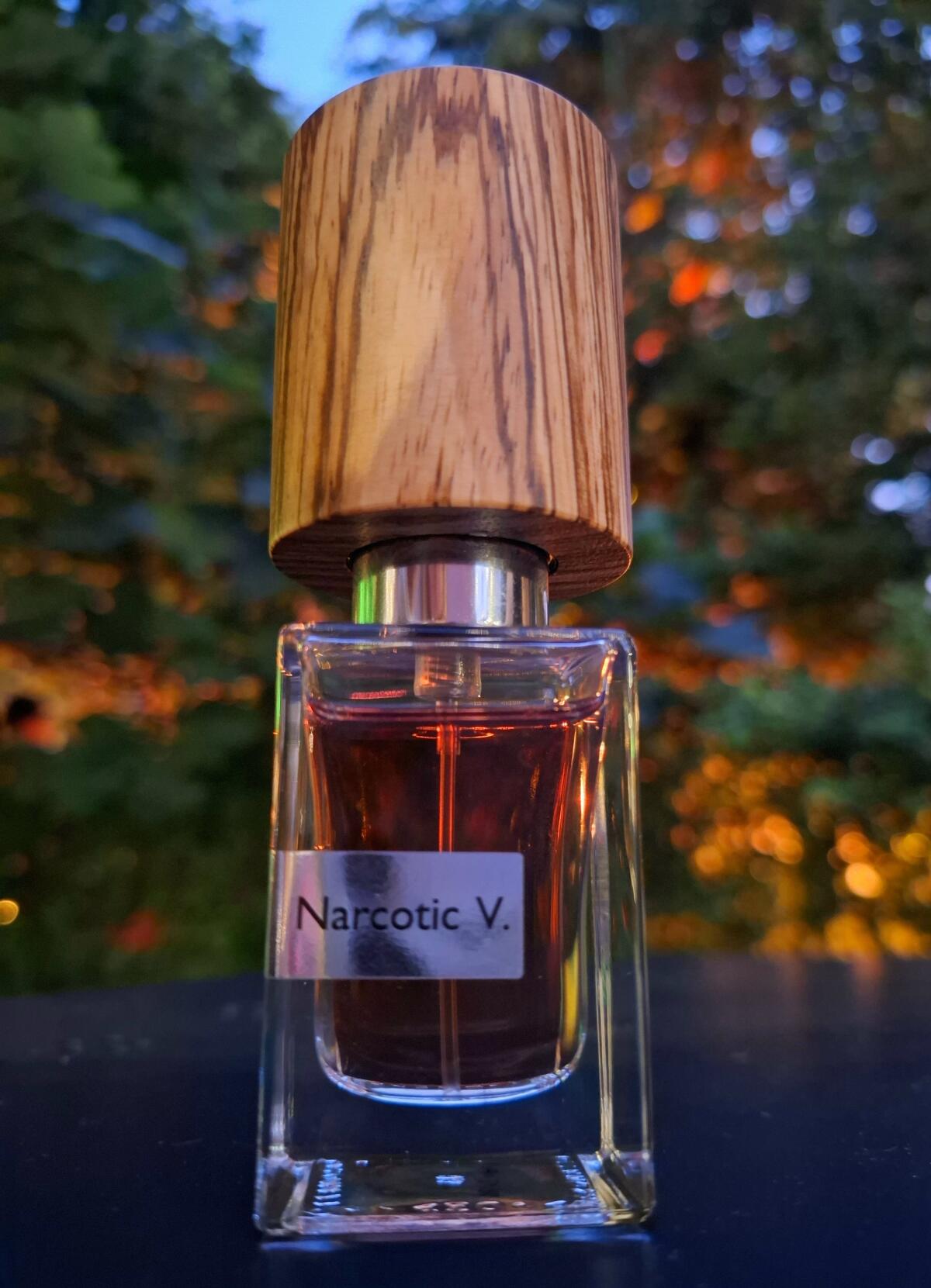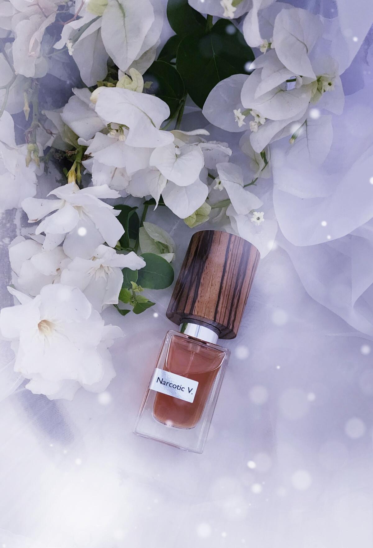 Spikenard, spikenard a tuberóza. Pokud nemáte rádi tuto notu, není to vůně pro vás. Ale pozor, čistá, krémová, lehce zelená tuberóza, i když méně tělesná než Carnal Flower a méně starobylá - a silná - než fracas. Pokud k ní nemáte přístup, řekla bych, že je podobná Bloom profumo di fiori (žlutý flanel), přičemž si zachovává velký odstup, protože Narcotic V nemá tón ylang ylang, který je patrný v té druhé, a je mnohem dokonalejší, "čistší" a realističtější. Bloom by byl spíše žlutý květinový a tento, alespoň pro mě, je jednoznačně bílý květinový. Také jsem slyšela, že se podobá My Way a Alien od Armaniho, ale to by se jim líbilo. Vulgárně řečeno "ani náhodou". Osobně žádnou podobnost s Alienem nevidím, je to parfém, kterému, pokud si dobře vzpomínám, dominuje jasmín a chybí tuberóza, alespoň v originále, nevím, jak je to s pozdějšími šaržemi nebo flankery. Tahle je živočišná, ale je velmi zajímavé, jak se k tomu zvratu dostala, protože vůbec není špinavá, naopak čistá a sexy. Opojná. Kořeněné tóny moc nevnímám.