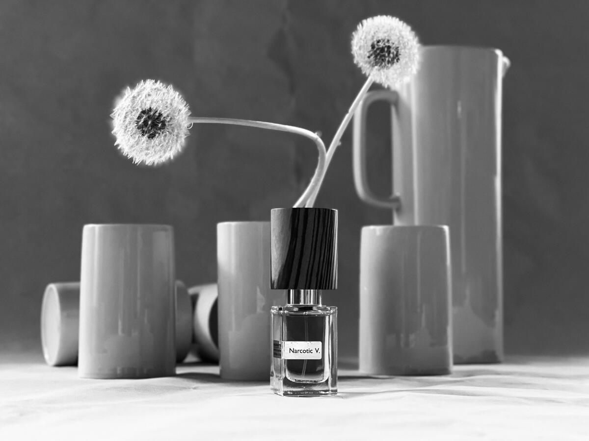 Narcotic V. (Reprise). Gualtieri nám říká, že vůně má evokovat intenzitu ženské sexuální potence. Zajímavé je, že tak nečiní děsivými vanilinovými stopami ani kyticemi překypujícími molekulami se sladkou ovocnou vůní, ale tvrdým, monolitickým, květinovým buketem: jasmínovými tóny, akordy připomínajícími pomerančový květ a ona, její výsost, tuberóza. Není na světě člověka, který by nemiloval její svěží, intenzivní, narkotickou vůni. Narcotic V. se tedy dívá na ženské pohlaví z přísně mužského hlediska, připomíná velmi klasický styl, ale, a to je rozdíl, učiněný zásadním, minimálním a čistým. Není v ní nic velkolepého, nic třpytivého ani odvážného. Gualtieri věřil pouze ve spontánní a divokou sílu bílých květů. Za to mnozí tento parfém přísně odsoudili. "Není v ní žádný pohyb", "není kreativní", "je nudná" atd. S těmito kritikami souhlasím. Myslím si však, že nás The Nose opět dostal do úzkých, protože kreativita Narcotic V. spočívá právě v tom: jen květiny, jen květiny a nic jiného. Luther byl také augustinián. V tom byl sotva originální. Nová byla násilnost, s jakou to vyslovil. Zde: Narcotic V. je luteránský parfém. Představení jsou děsivá. Délka trvání je prostě neuvěřitelná!