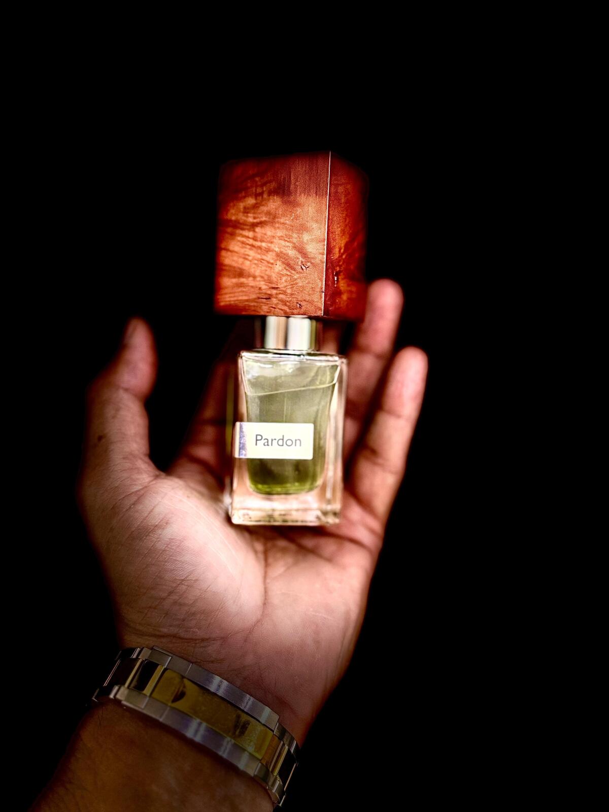 Pardon podle Nasomatto je vůně pro muže. Pardon byl/a uveden/a v roce 2011. "Nosem" za touto vůní je Alessandro Gualtieri. Vrchní tóny jsou Magnólie a Květiny; střední tóny jsouHořká čokoláda, Fazole tonka a Skořice ; základní tóny jsou Agarové dřevo (oud) a Santalové dřevo.