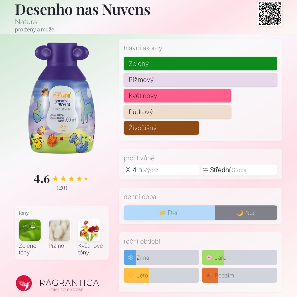 Desenho nas Nuvens podle Natura je Aromatic vůně pro ženy a muže. Desenho nas Nuvens byl/a uveden/a v roce 2020. "Nosem" za touto vůní je Verônica Kato. Vrchní tón je Květiny ; střední tón jeBylinné tóny ; základní tón je Pižmo.