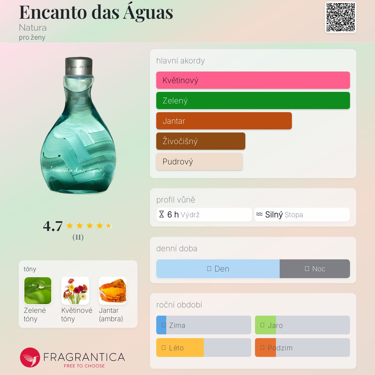 Encanto das Águas podle Natura je Floral Green vůně pro ženy. Encanto das Águas byl/a uveden/a v roce 2010. Vrchní tón je Zelené tóny ; střední tón jeKvětinové tóny ; základní tón je Jantar (ambra).