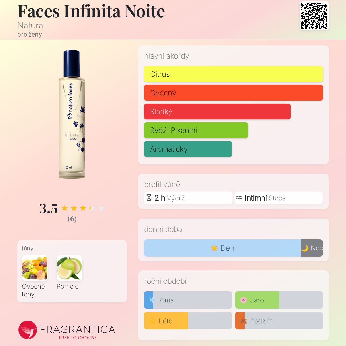 Faces Infinita Noite podle Natura je Aromatic Fruity vůně pro ženy. Faces Infinita Noite byl/a uveden/a v roce 2011. "Nosem" za touto vůní je Verônica Kato.