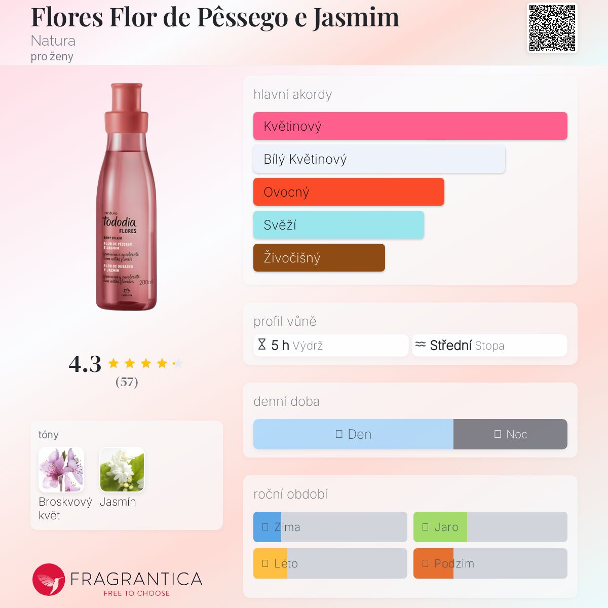 Flores Flor de Pêssego e Jasmim podle Natura je Floral Fruity vůně pro ženy. Toto je nová vůně. Flores Flor de Pêssego e Jasmim byl/a uveden/a v roce 2025.