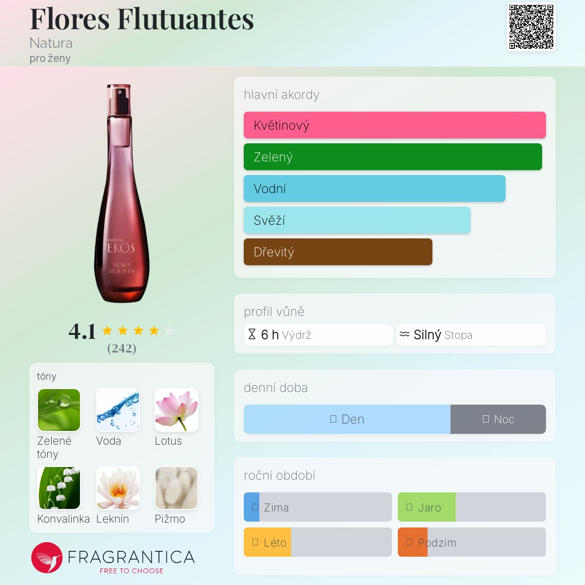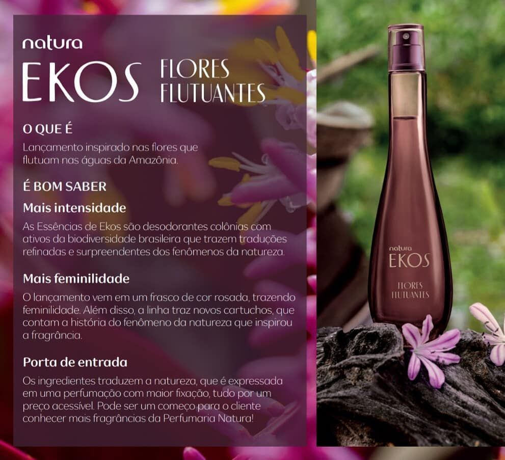 Flores Flutuantes podle Natura je Floral vůně pro ženy. Flores Flutuantes byl/a uveden/a v roce 2019. "Nosem" za touto vůní je Verônica Kato. Vrchní tóny jsou Zelené listí, Vodnaté tóny, Máta, Bergamot a Pataqueira; střední tóny jsouLotus, Konvalinka, Leknín, Frézie, Vetiver a Fialka ; základní tóny jsou Pižmo, Dřevo akigala, Breu-Branco a Pačuli.