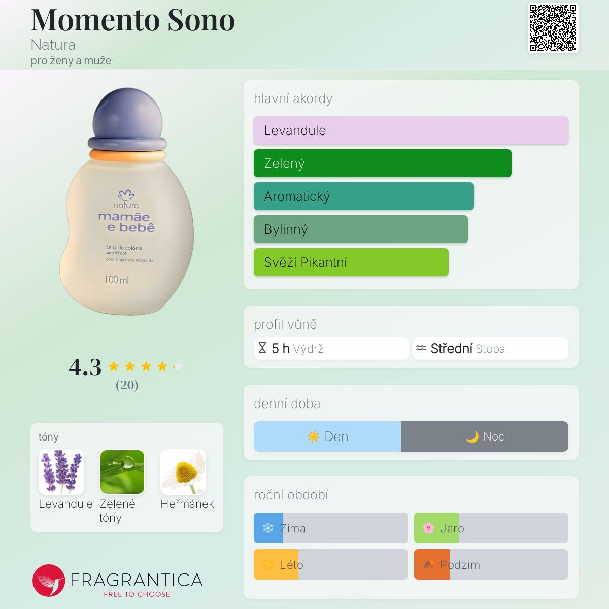 Momento Sono podle Natura je Floral vůně pro ženy a muže. Momento Sono byl/a uveden/a v roce 2016. "Nosem" za touto vůní je Verônica Kato.
