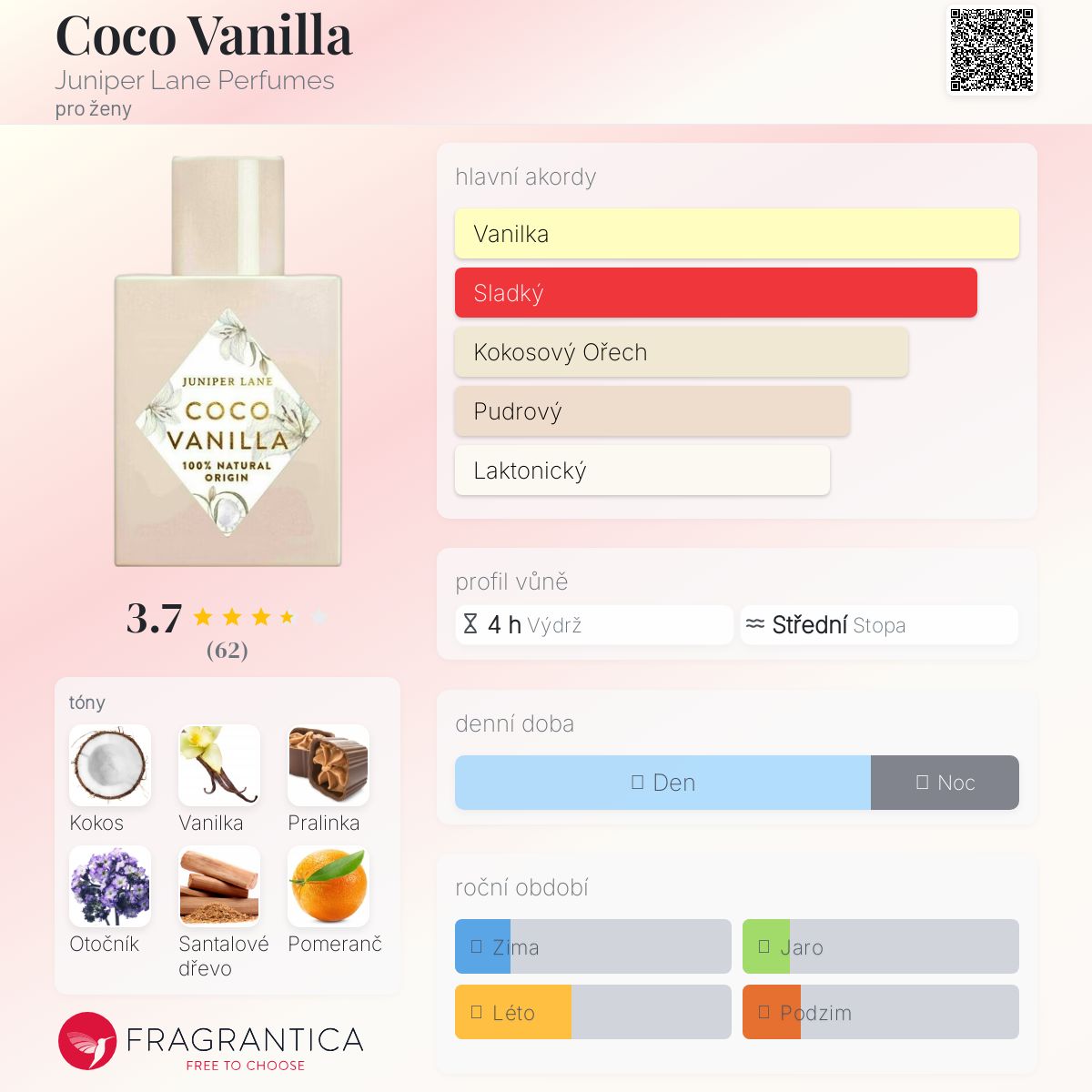 Coco Vanilla podle Nature Blossom je Orientální Vanilla vůně pro ženy. Toto je nová vůně. Coco Vanilla byl/a uveden/a v roce 2022. Vrchní tóny jsou Pomeranč, Třešňový květ a Pomerančový květ; střední tóny jsouKokos a Otočník ; základní tóny jsou Vanilka, Pralinka a Santalové dřevo.