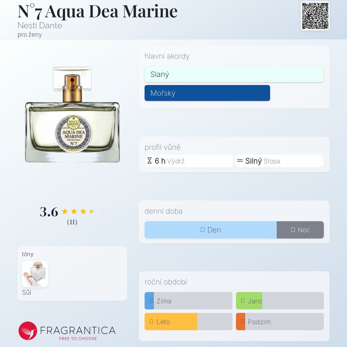 N°7 Aqua Dea Marine podle Nesti Dante je Aromatic Aquatic vůně pro ženy. N°7 Aqua Dea Marine byl/a uveden/a v roce 2019.